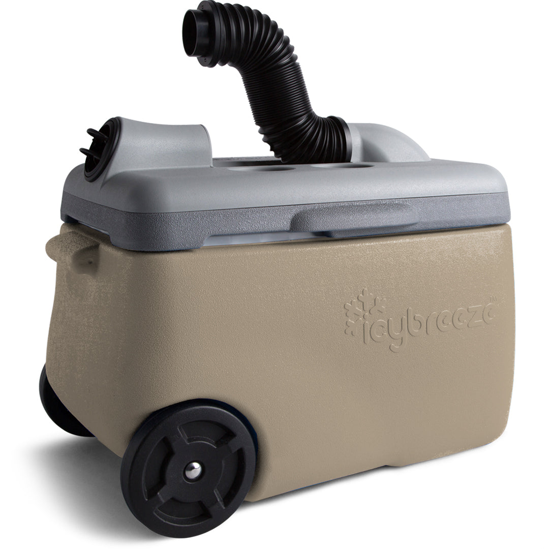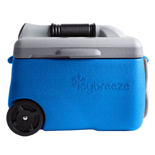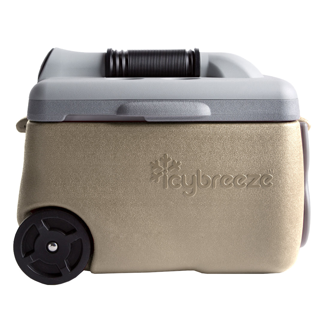 IcyBreeze is the world’s first personal, portable air conditioner and cooler designed to keep you and your drinks cool anywhere life takes you. The two-in-one IcyBreeze utilizes cold water in the bottom of the tub to serve as a cooling agent. The IcyBreeze does not contain freon, nor does it produce exhaust heat, so it can be used indoors or outdoors. The IcyBreeze can dispense cold, dry air up to 35 degrees below the outside temperature; the three speed fan produces currents up to 25 mph, providing maximum cooling relief.
