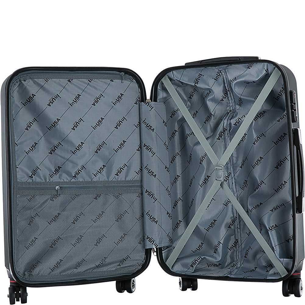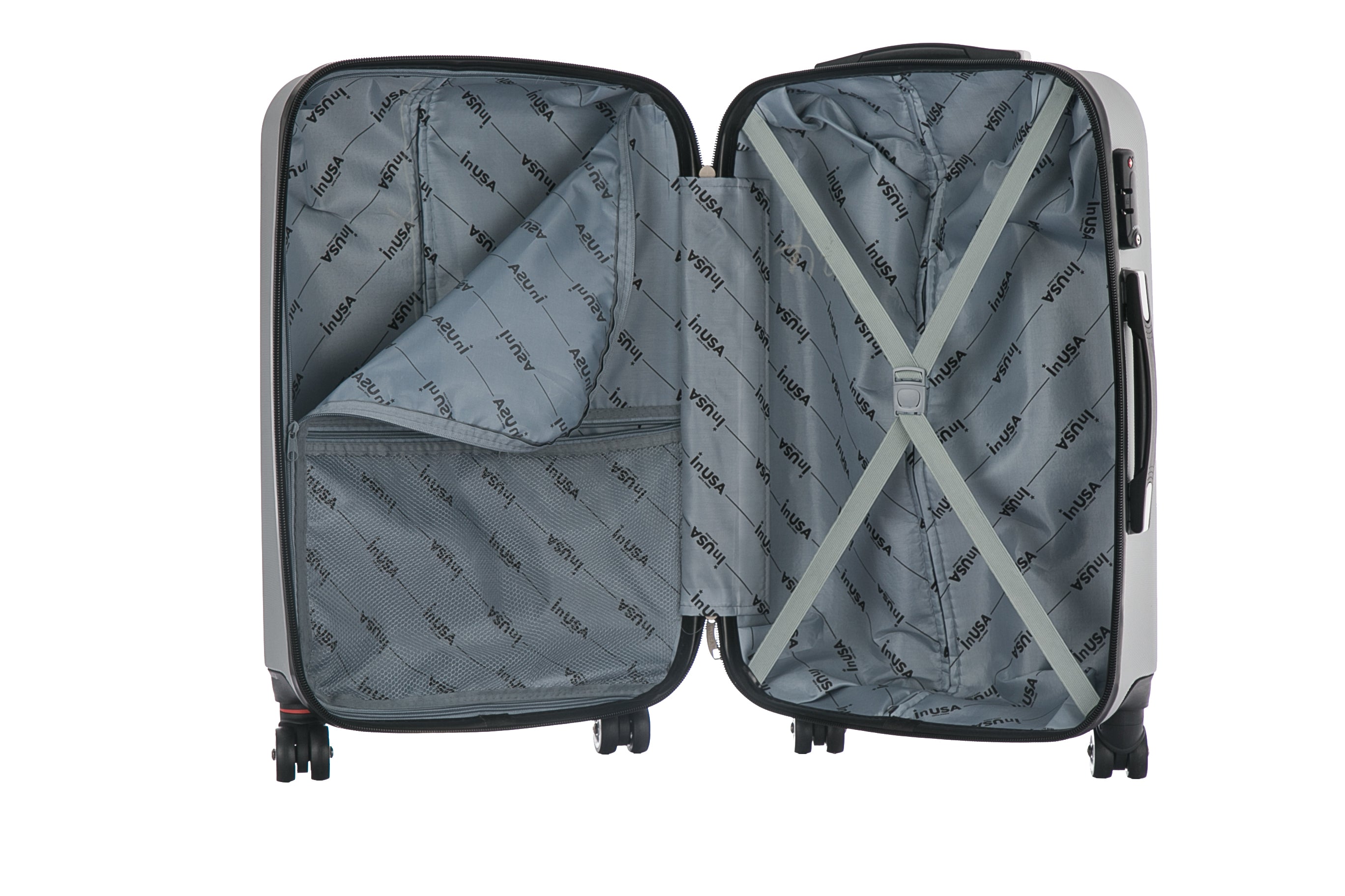 The InUSA Chicago collection is proudly assembled in the USA from imported parts using lightweight ABS/PC engineered material with micro diamond finish. Functional style with 4 airplane design dual spinner multi-directional silent 360 degree wheels for effortless mobility. The sturdy construction offers maximum strength, durability and a water/scratch resistant finish. Full interior fabric lining with a zippered compartment on one side, opposite side offers elastic tie-down straps for additional support and an inside pocket. A side mounted 3 digit TSA approved combination lock, push button locking internal retractable trolley system. The small size offers a Top ergonomic GEL handle. The medium and large size offers Top and Side ergonomic GEL handles for comfortable and easy lifting. Smooth running quality oversized number 10 Zipper. Four side studs allows each piece to stand upright on its side.