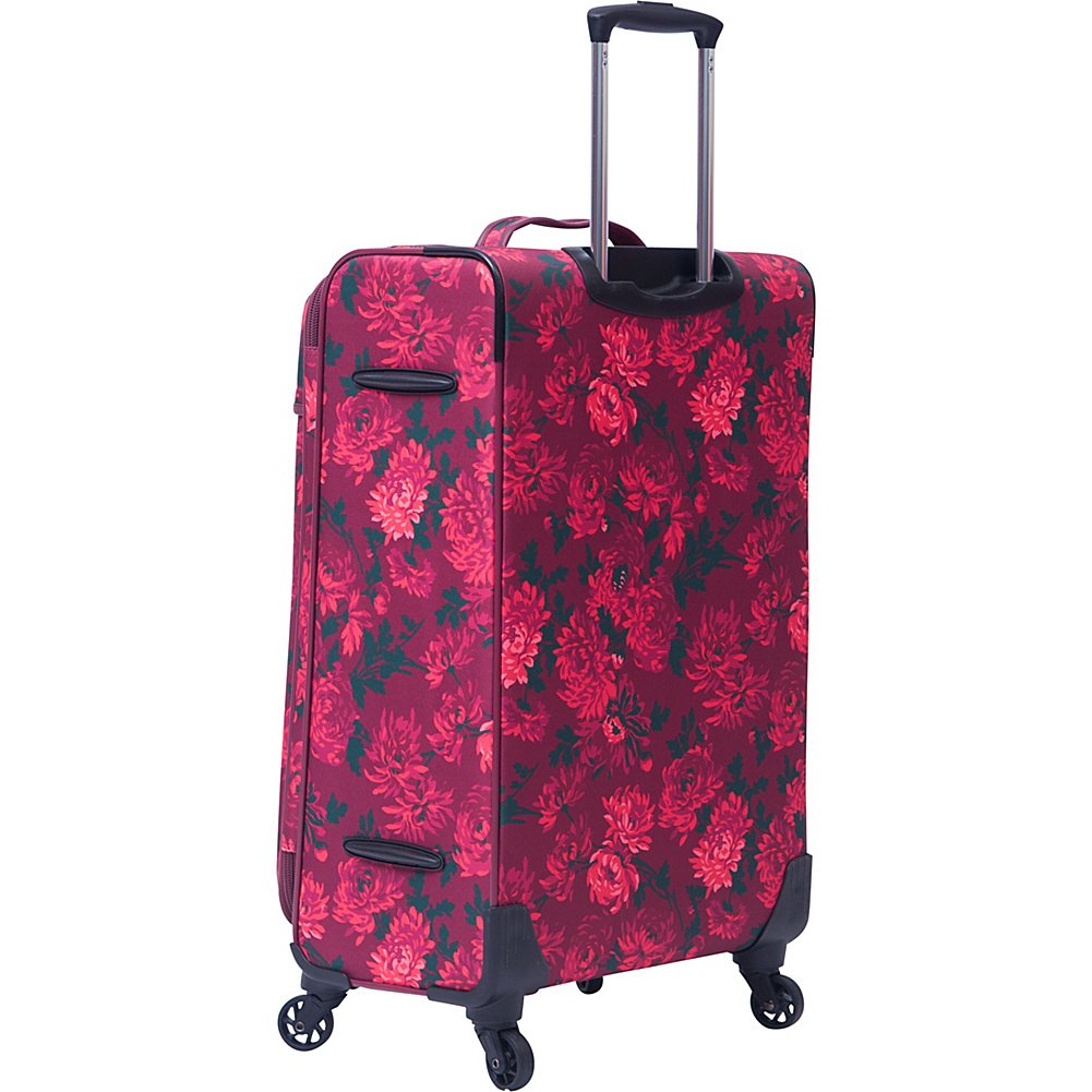 Isaac Mizrahi exclusive design, Isaac Mizrahi hardware, Durable fashion fabrics, Interior pocket, Fully lined interior, Top & side carry handles on all uprights, Spinner wheels on all uprights, Interior tie-down straps on all uprights, Fully lined interior, Push button handle system, Zipper Closure, , ,