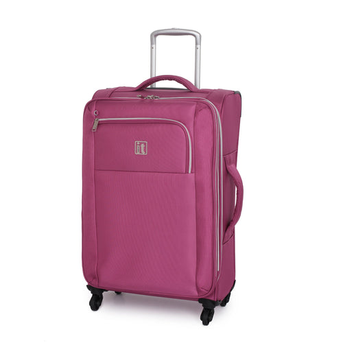 The it luggage megalite x-weave collection is made of high density polyester fabric. This 3-piece luggage set is detailed with 4 multi-directional spinner wheels that rotates 360 degrees for easy maneuverability, a push-button retractable telescopic handle along with soft touch ergonomic top and side carry handles. The rubberized corner protectors provide exceptional protection from wear and tear. The interior includes tie-down straps and a a zippered mesh lid pocket while the exterior offers 2-zippered front pockets for added storage. A perfect ultra lightweight luggage set for all sorts of overnight trips or extended journeys.