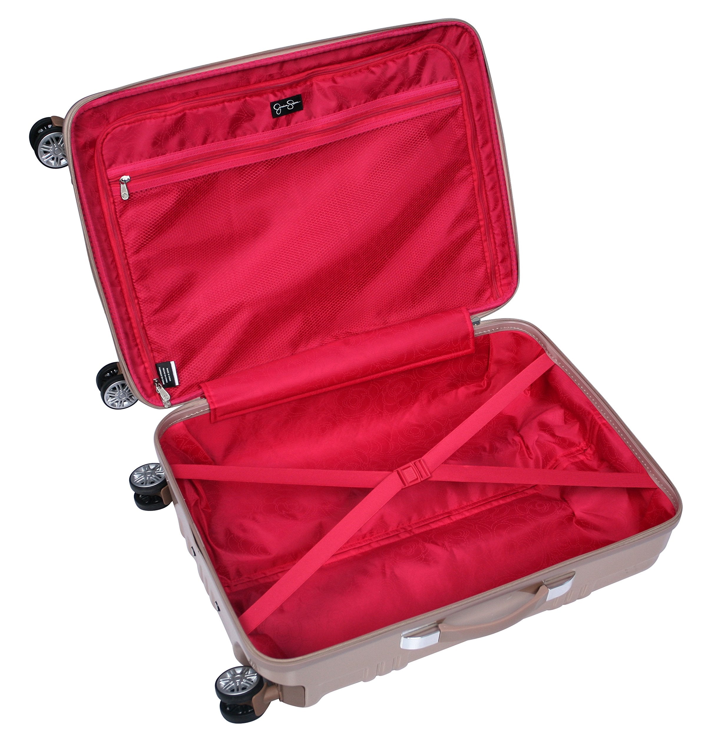This trendy expandable hardside luggage collection is perfect for any trendsetter on the go. Made of polycarbonate film and ABS construction, each item in the collection has a beautifully finished aluminum push button handle system and 5 spinner wheels that allow for easy mobility. Interior features consist of removable shoe and laundry bags, various pockets and tie down straps for easy organization and packing capacity.