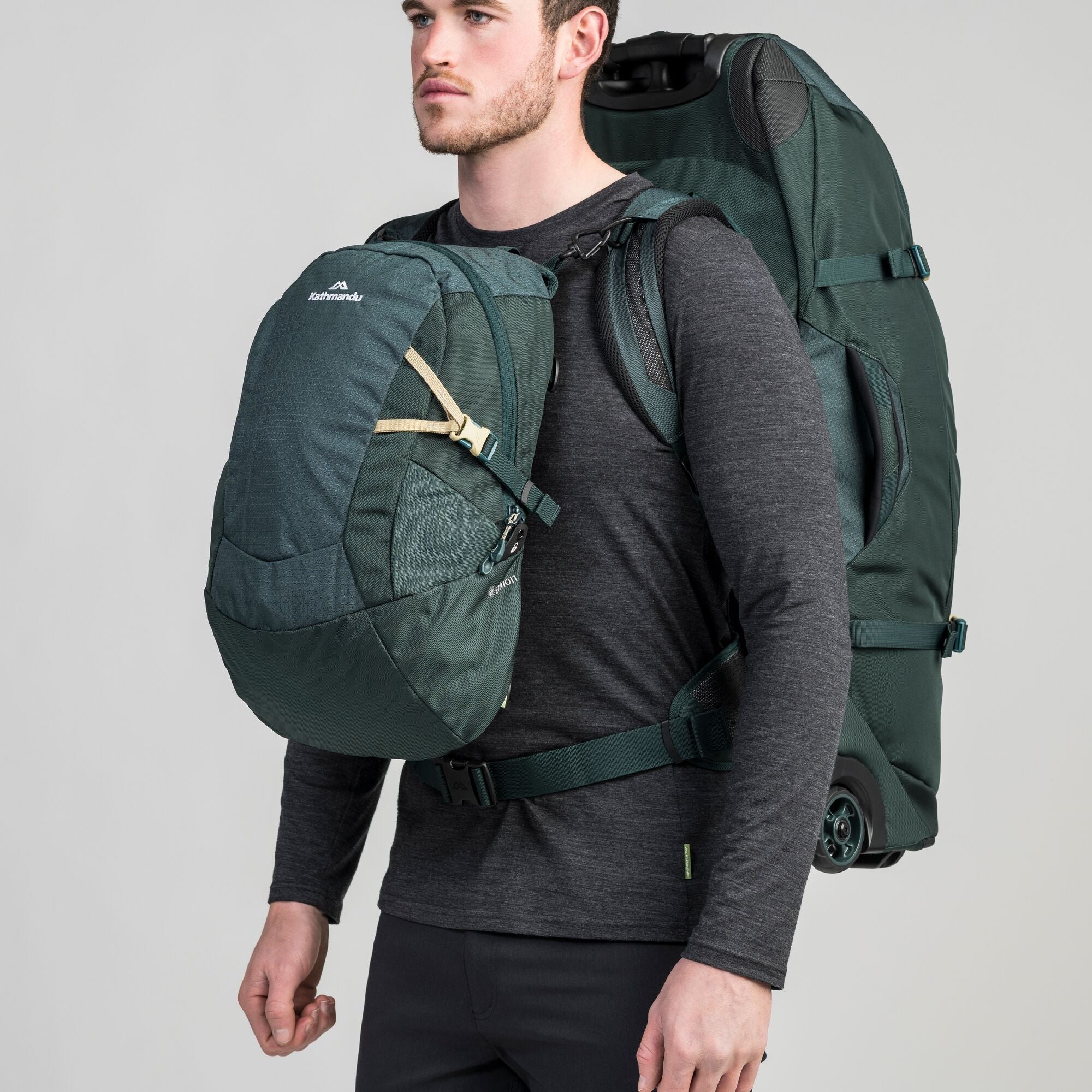 • The innovative Gluon system gives you extra storage and a detachable day pack