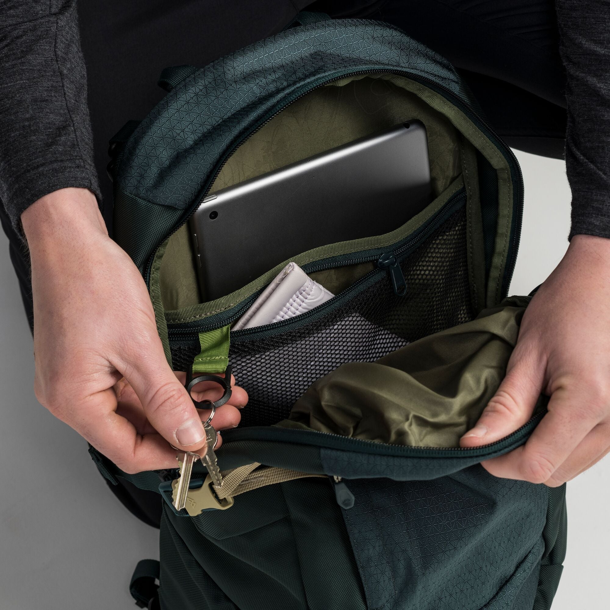 The 18L Gluon Beyond Pack gives you extra storage on the go. Attach it to our Hybrid Trolleys and travel packs or use it as a stand-alone daypack. Lockable zips and an internal security zip pocket help keep gear safe.