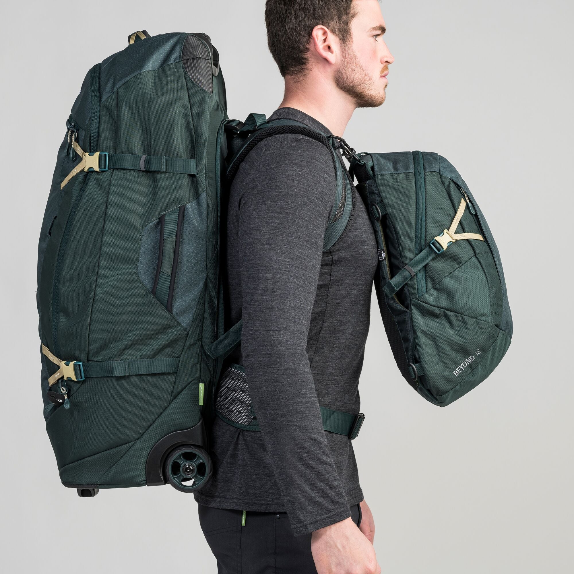 • The 18L Gluon Beyond Pack gives you extra storage on the go. Attach it to our Hybrid Trolleys and travel packs or use it as a stand-alone daypack. Lockable zips and an internal security zip pocket help keep gear safe.