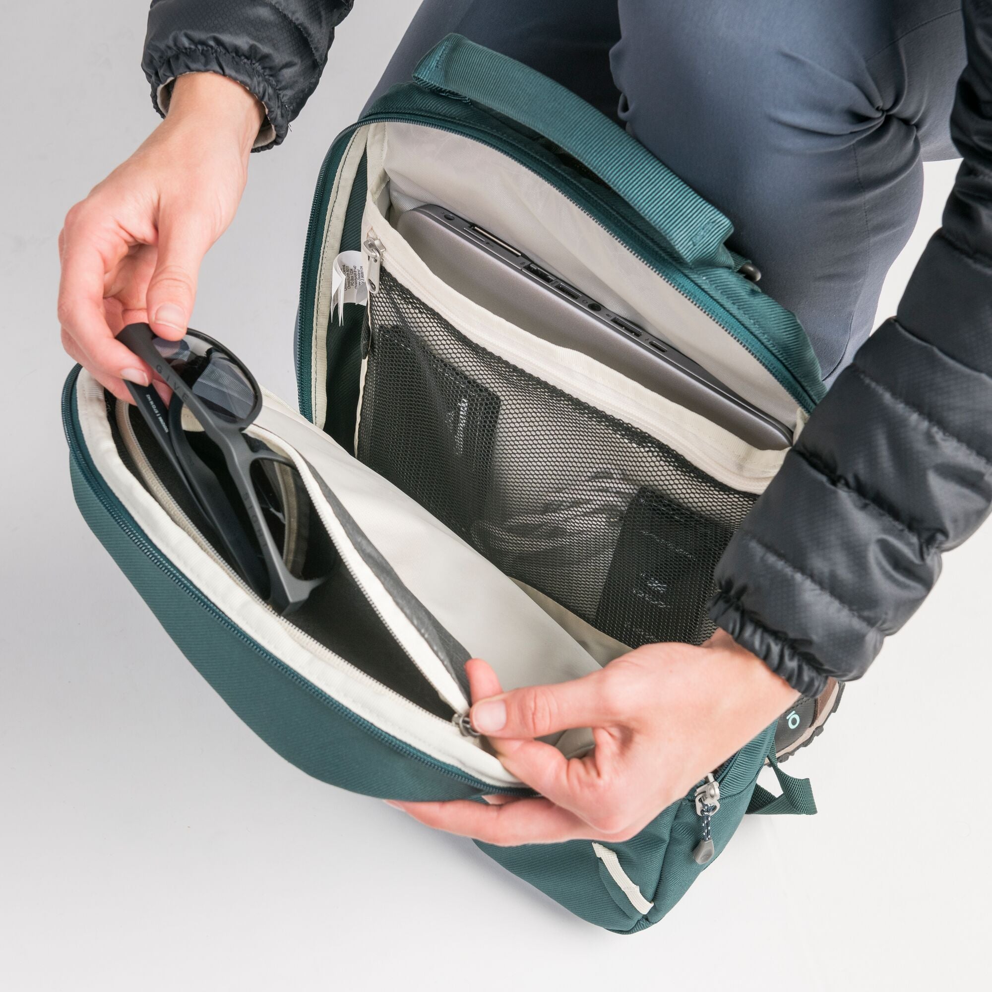 Make the most of airline regulations that let you take a carry-on plus one personal item with our 12L Litehaul Plus 1 pack. The slim line design fits the airline description of personal item and fits easily under the seat in front. A tuck-away harness means this pack quickly transforms into a small brief and will double as a day pack when you reach your destination. Theres an internal laptop sleeve and a mesh pocket for little things. Quickly connect it to other bags for versatile carrying options when you arrive.