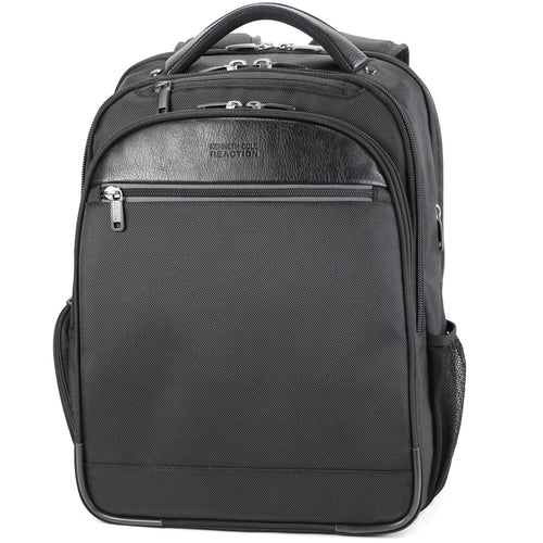 1680d polyester double gusset top zip ez scan computer backpack. 1680dpolyester exterior with leather-like pu trim and fully lined interior. Doublegusset, expandable top zip construction with ez-scan feature. Expansionfeature for added carrying capacity. Size: 17.0 inch h x 13.0 inch w x 8.25 -9.5 inch d. Easy access zipper pocket and soft lined zipper pocket to holddigital media or other valuables. Front zip down pocket includes an extensiveorganizer that will hold a variety of business essentials and includes aremovable zippered accessory pouch. Designed with checkpoint friendly/ez-scanfeature which complies with tsa guidelines so your laptop does not need to beremoved when passing through airport security checkpoints, allowing you to geton your way faster. Front compartment contains a padded iPad/tablet pocket, afull length open top pocket, and a zippered mesh pocket. Ez-scan sectionincludes three zippered organizer pockets. Rear compartment is padded to holdmost laptops with up to a 15.6 inch screen. High tech double density foampadding for extra laptop protection. Side exterior features a zipper pocketand a mesh open top beverage holster. Padded top handle and air mesh backpanel that will attach to most luggage upright handles for hands freecarrying. Ergonomic adjustable backpack straps with sternum strap.