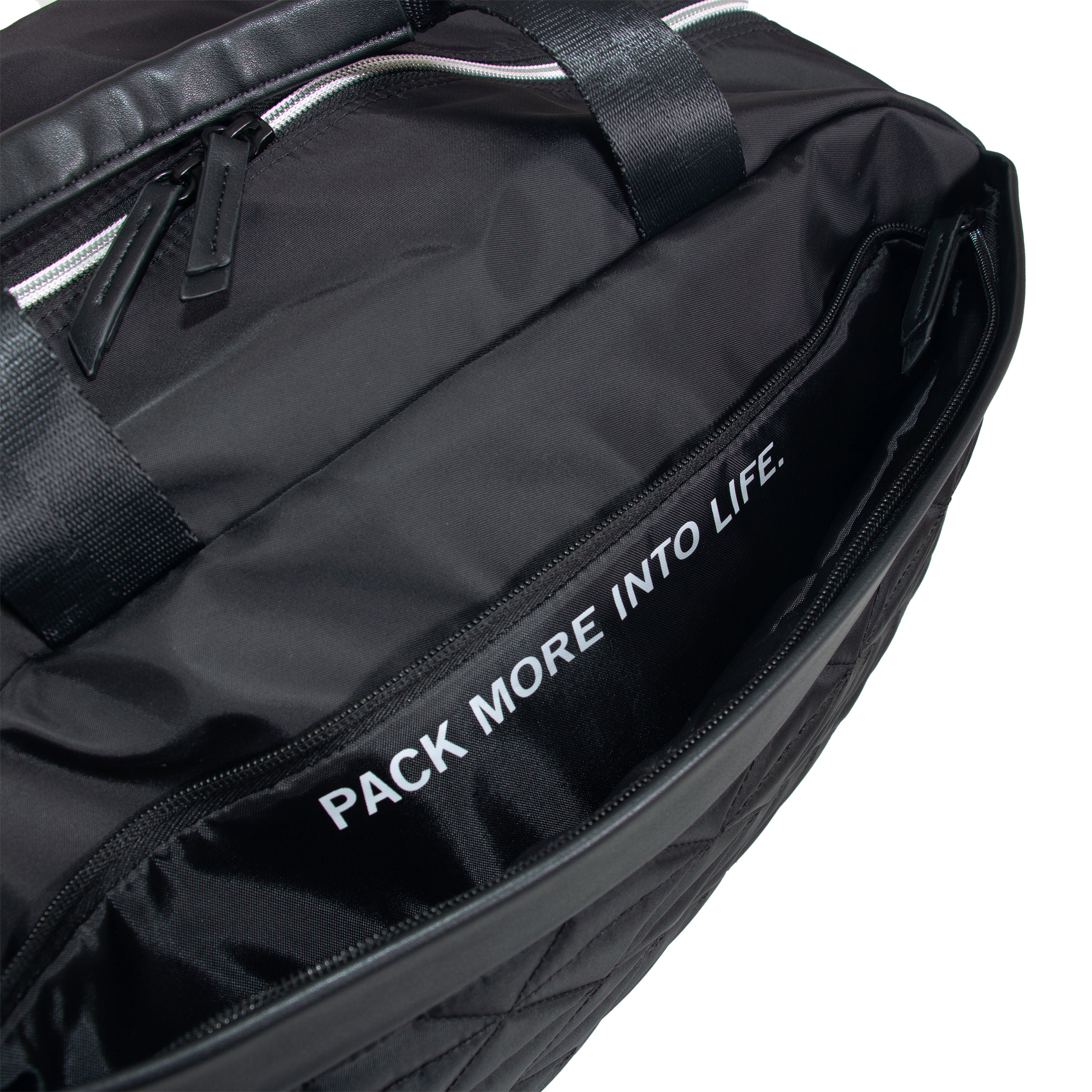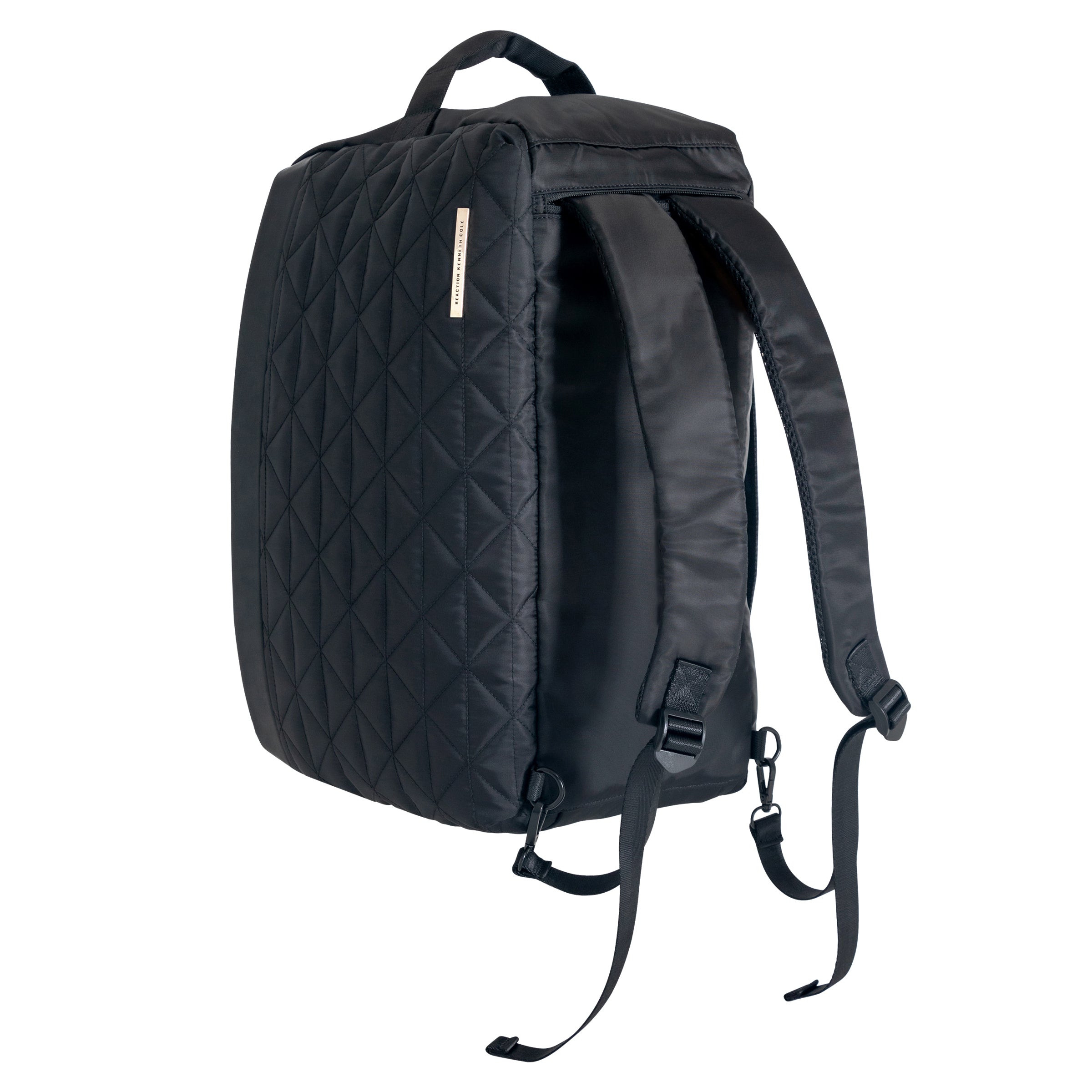 The Kenneth Cole Reaction Emma Convertible Duffel Backpack is the perfect travel companion crafted with a premium silky polyester exterior and self-repairing zippers. This bag seamlessly transitions from duffel to backpack whether you are headed into the office, the gym, or traveling. The padded laptop pocket can fit up to a 16 screen. Designed with functionality in mind, this bag features an exterior wet pocket for shoes or gym clothes, helping keep the mess away. The exterior quilted front pocket adds a pop of fun along with additional storage. When you open up the main compartment you will find two slip pockets that provide even more organization for your belongings. The trolley tunnel allows for effortless attachment to your luggage for hassle-free travel. This bag allows you to carry it in various ways. The padded grab handles provide easy lifting, and the stow away backpack straps can quickly be attached if you want to carry it on your back. Experience comfort and convenience with the Emma Convertible Duffel Backpack. Pack More Into Life. Overall Dimensions: 11.5 H x 18 L x 8 D. Laptop Pocket Dimensions: 8 H x 13.7 L x 1 D. Weight: 2.35 lbs. Backed by a manufacturers lifetime limited warranty.
