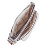 A sturdy and stylish multitasking cross-body design that easily accommodates magazines, iPads or an e-reader with a perfectly-sized organizational compartment for your phone, tunes and so much more. Dimensions:10.5" x 11.75" x 2" in.