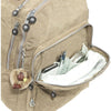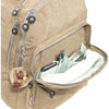 All Kipling bags can be softly cleaned by hand only. Please clean the outside fabric with a slightly wet cloth. Be sure to wipe in the direction of the fabric. Do not bleach. Do not soak in water. Hang away from direct sunlight to dry.
