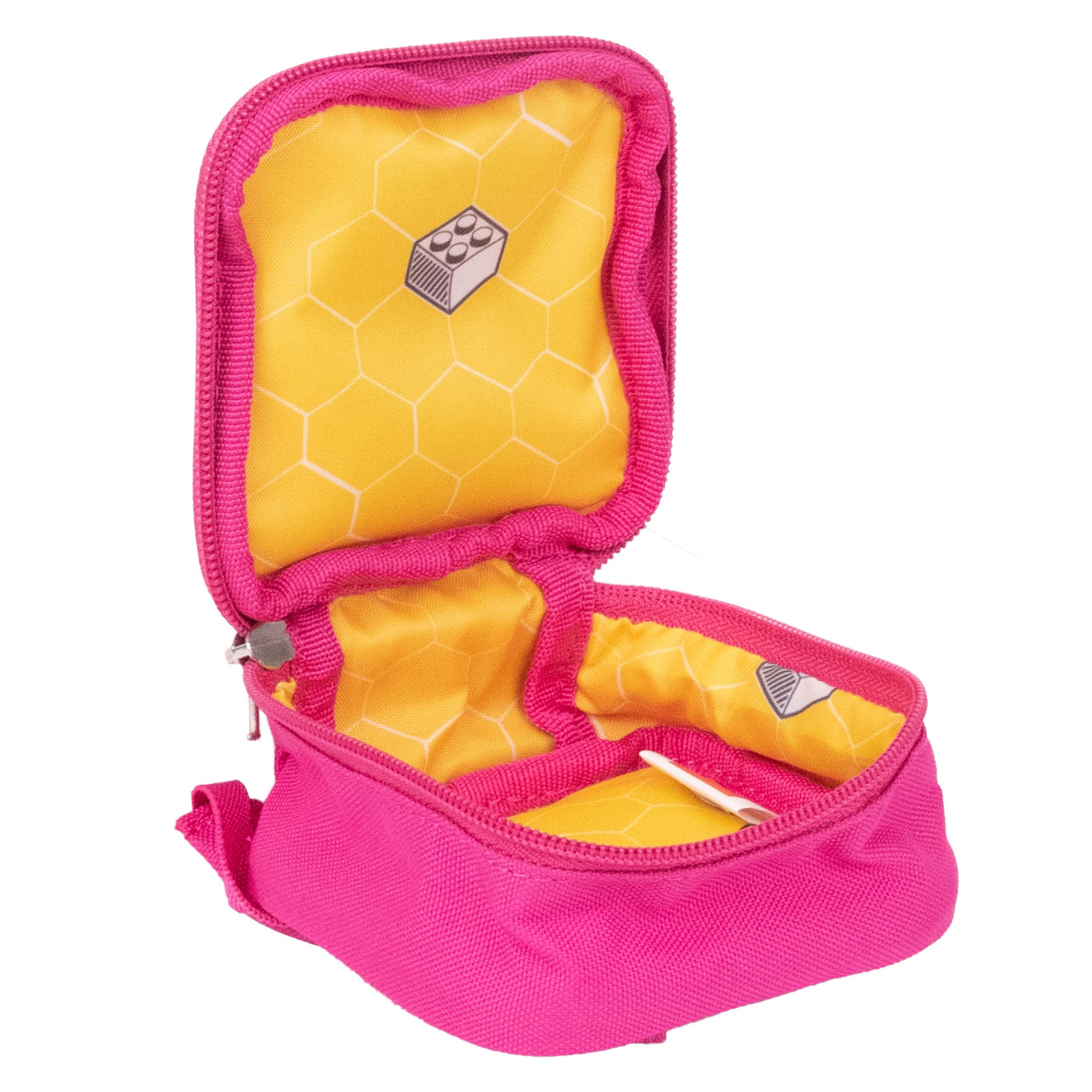 Designed to resemble a 1x1 LEGO brick, complete with backpack straps, this novelty pouch is the most fun your accessories ever had! Stash your keys, pocket-size school or office supplies, or USB cables and earphones. The bag snaps onto a belt or onto our full-size Brick Backpack for convenient carry.