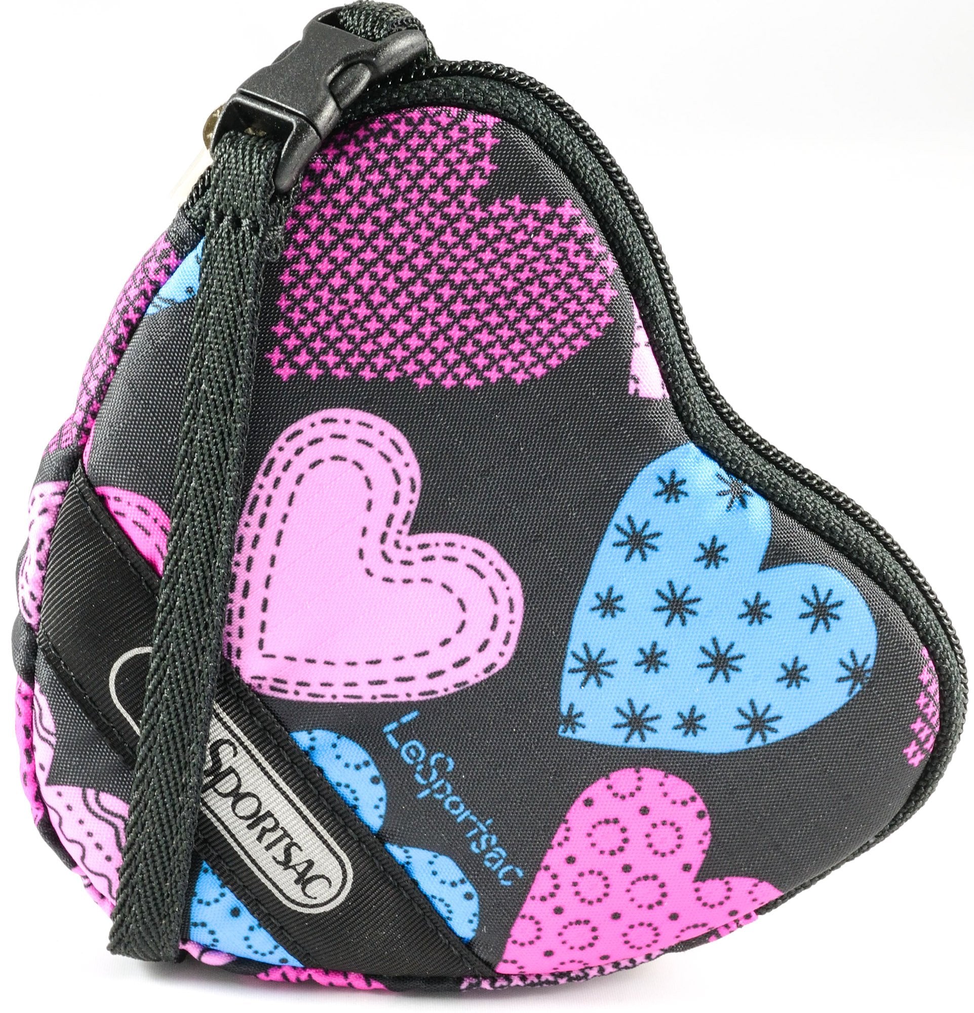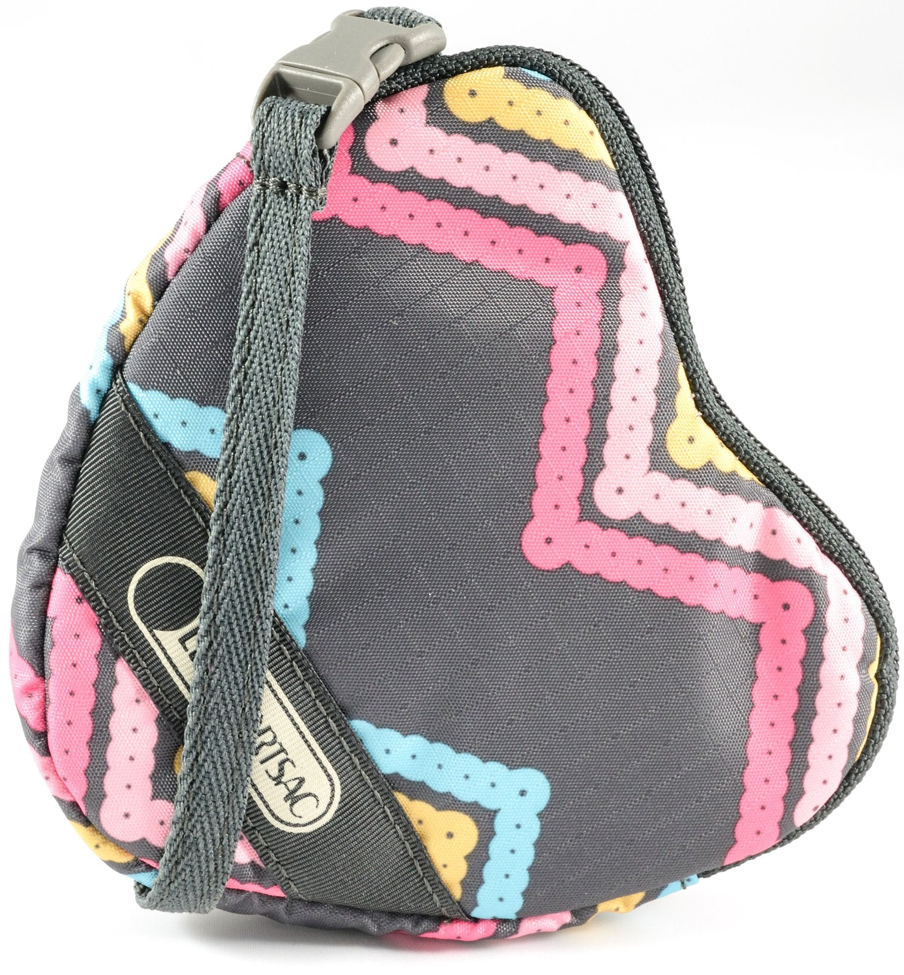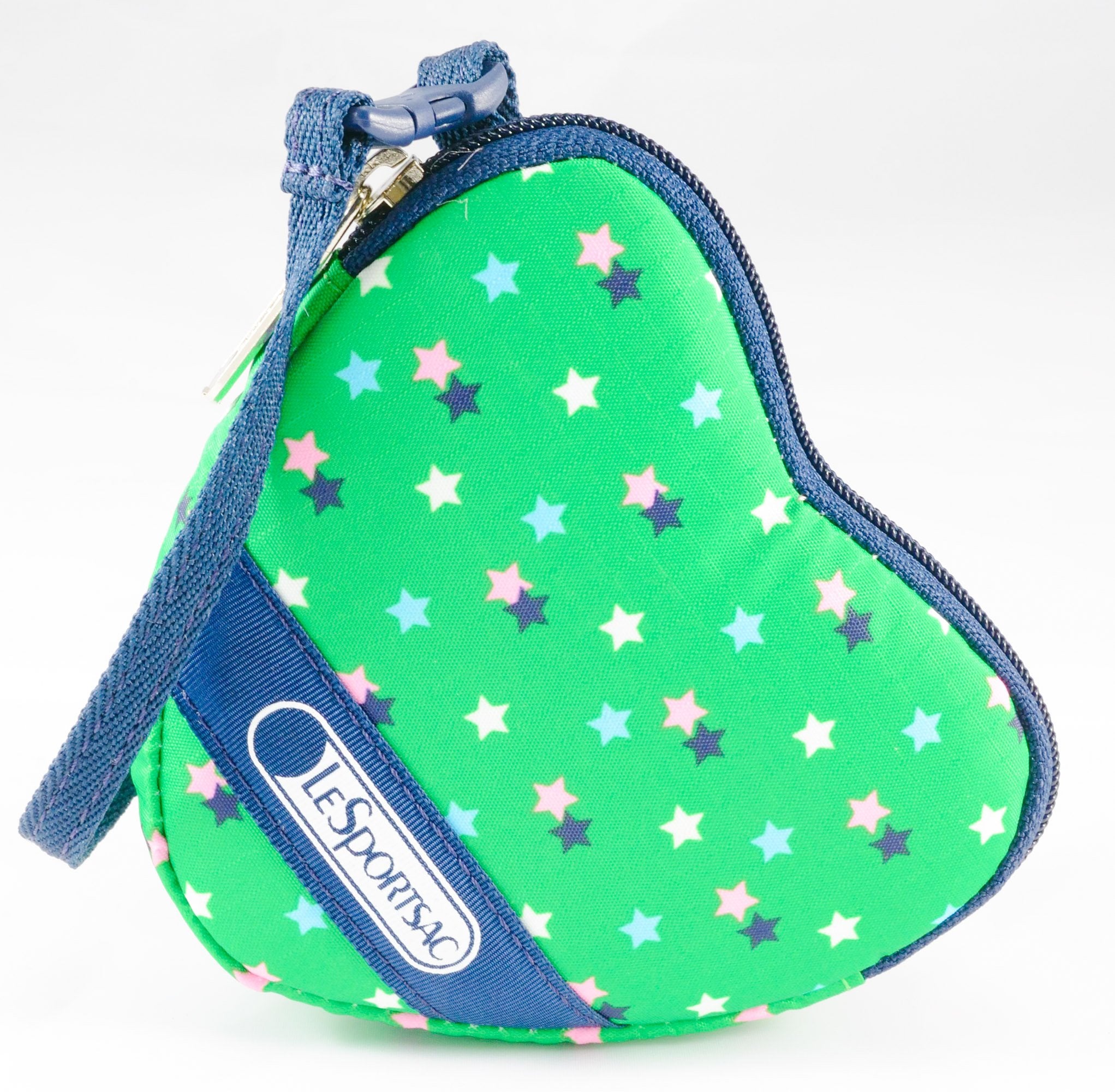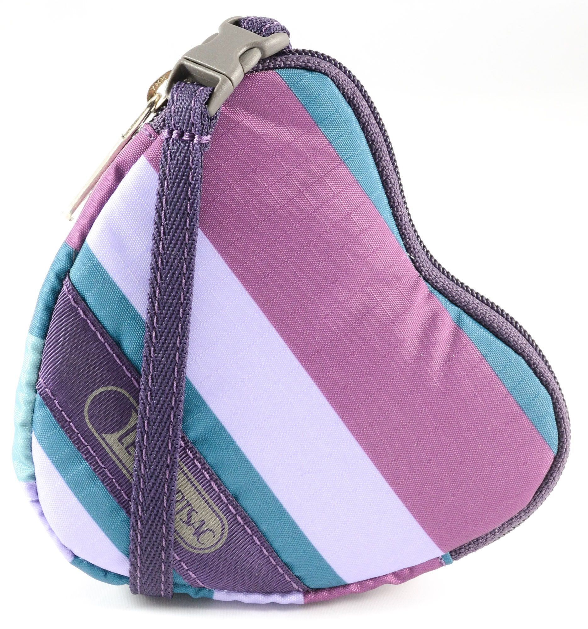 This heart-shaped pouch features logo-print grosgrain banding at the front. Zip closure. Buckle at wrist strap. Logo-lined interior features patch pocket.