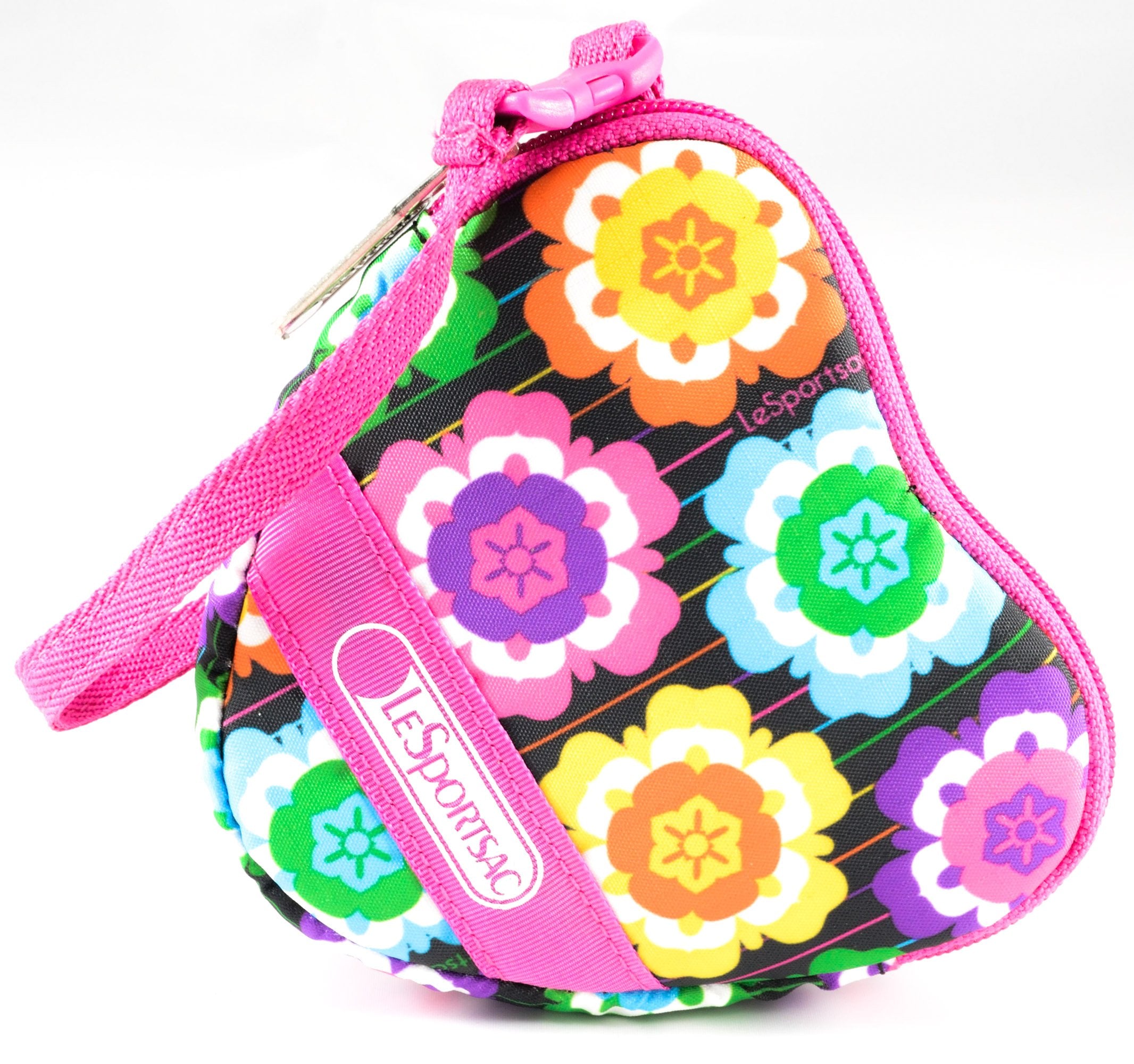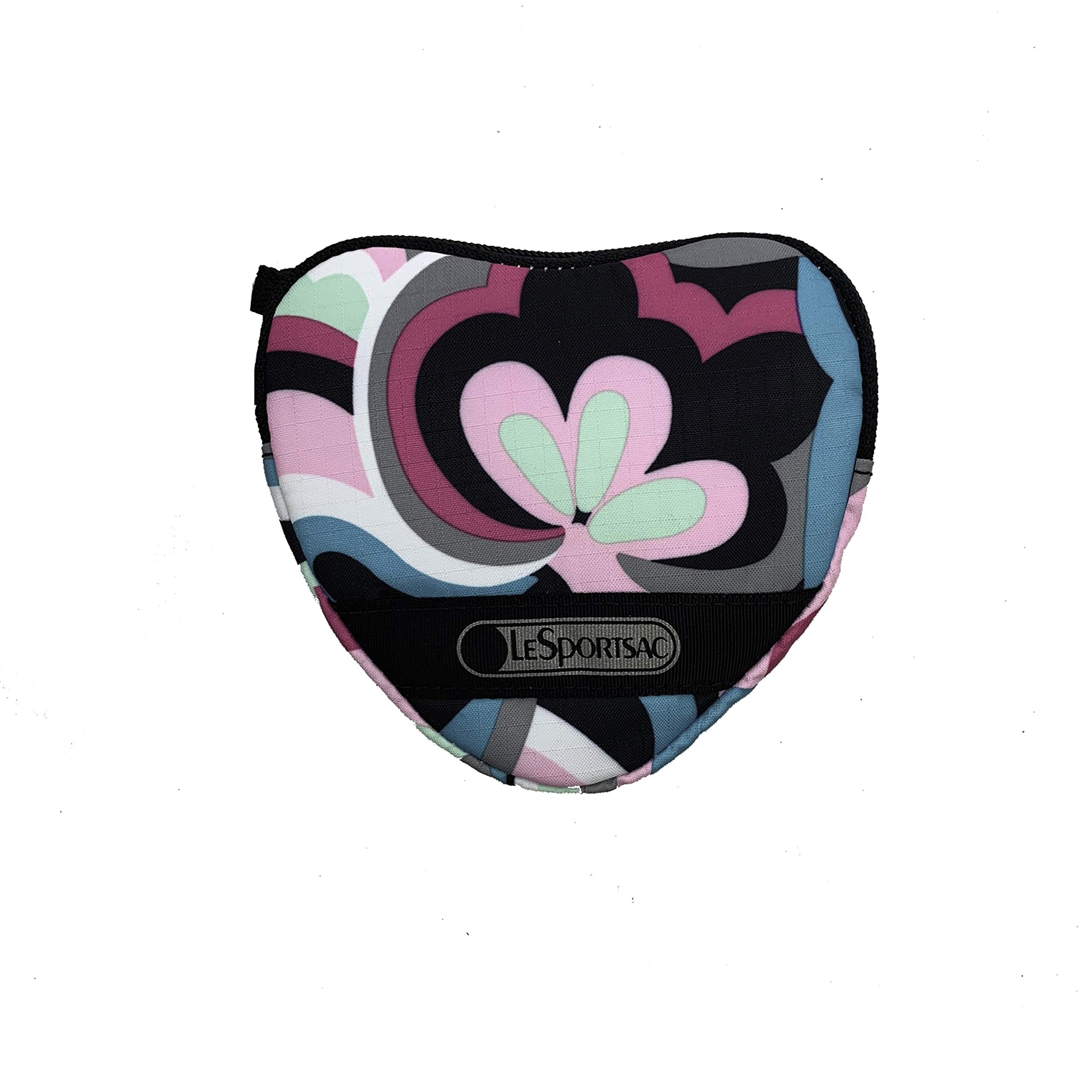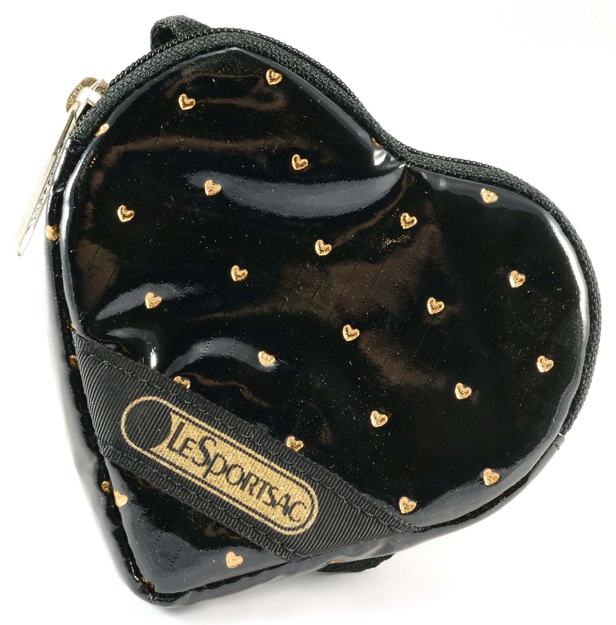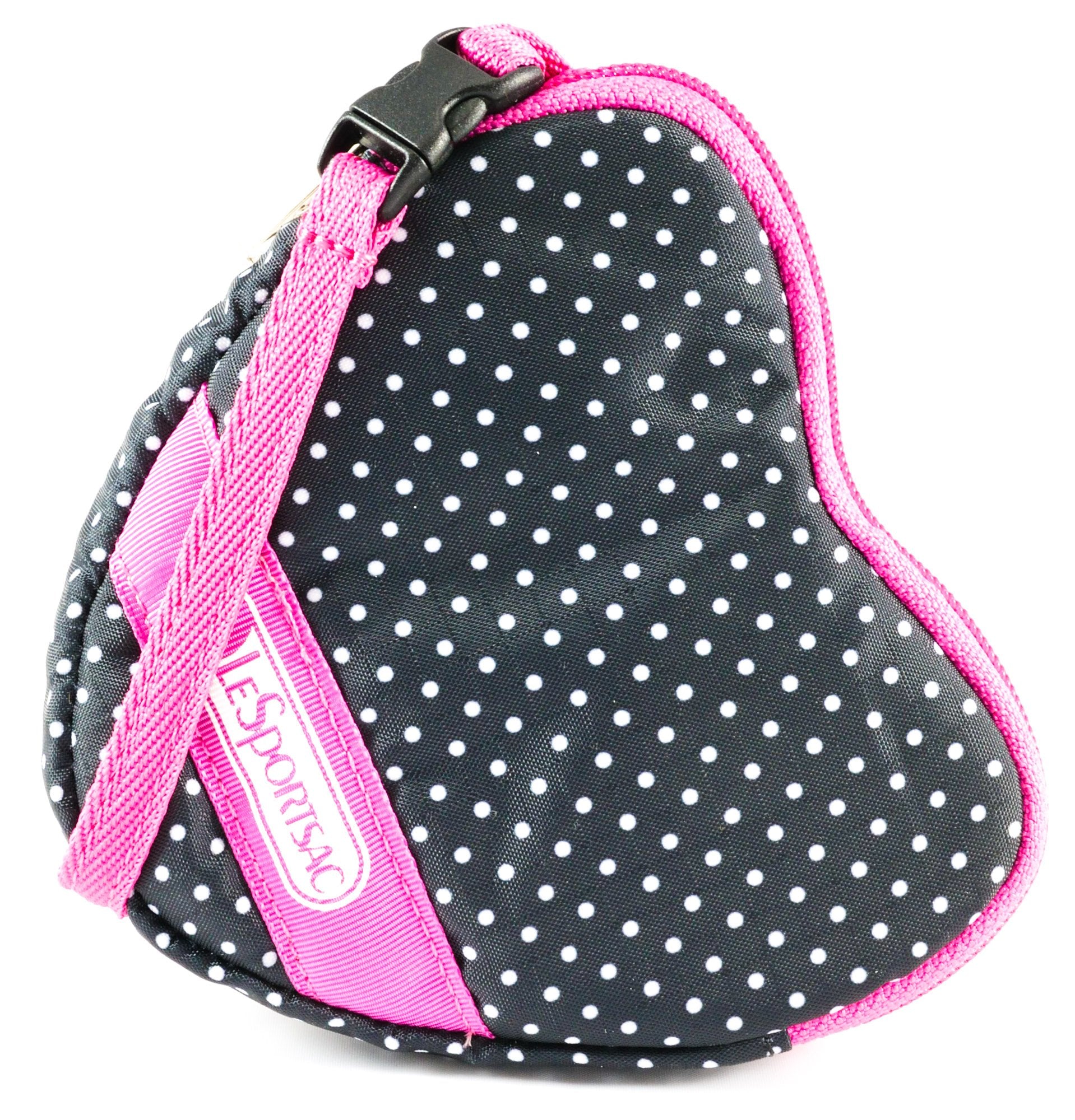 This heart-shaped pouch features logo-print grosgrain banding at the front. Zip closure. Buckle at wrist strap. Logo-lined interior features patch pocket.
