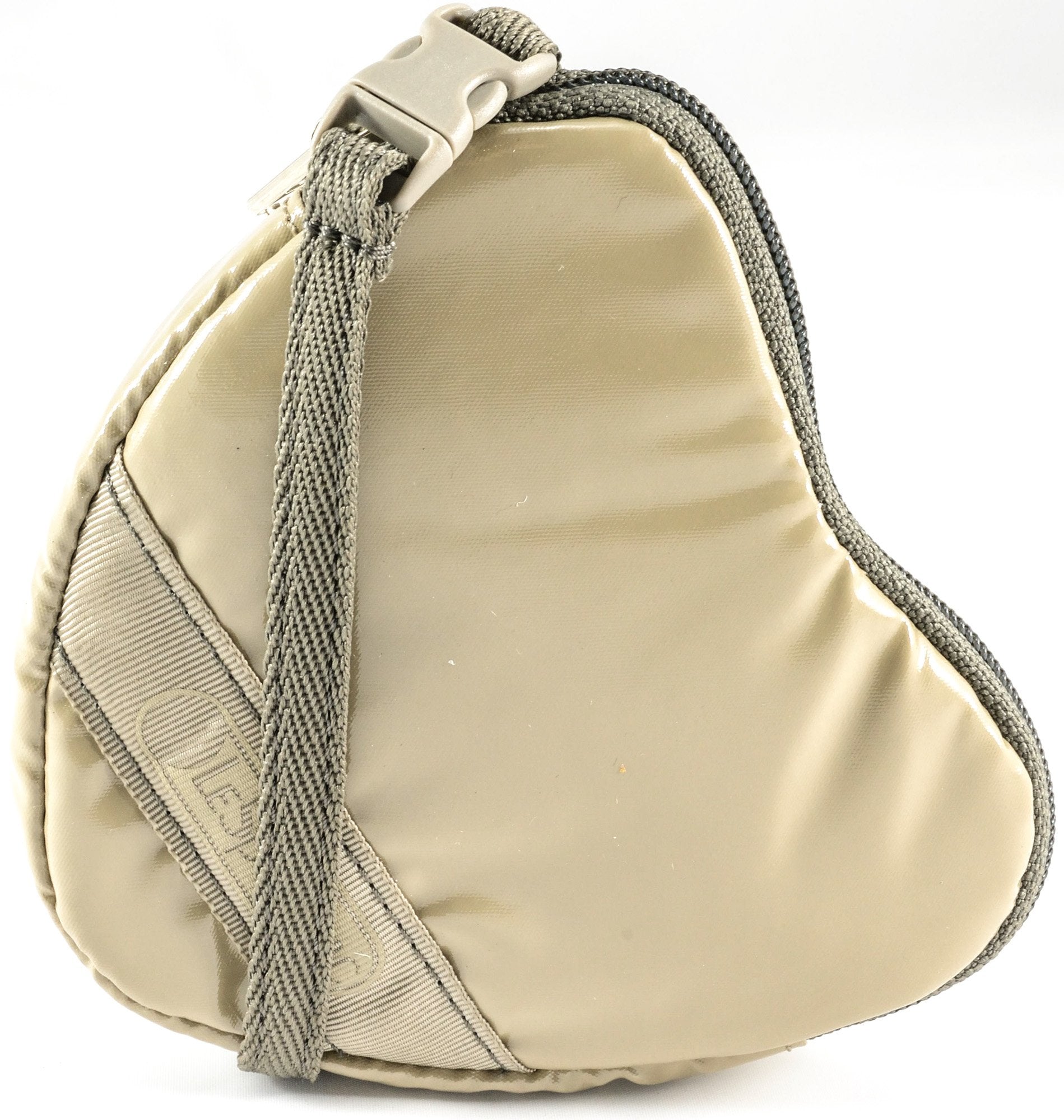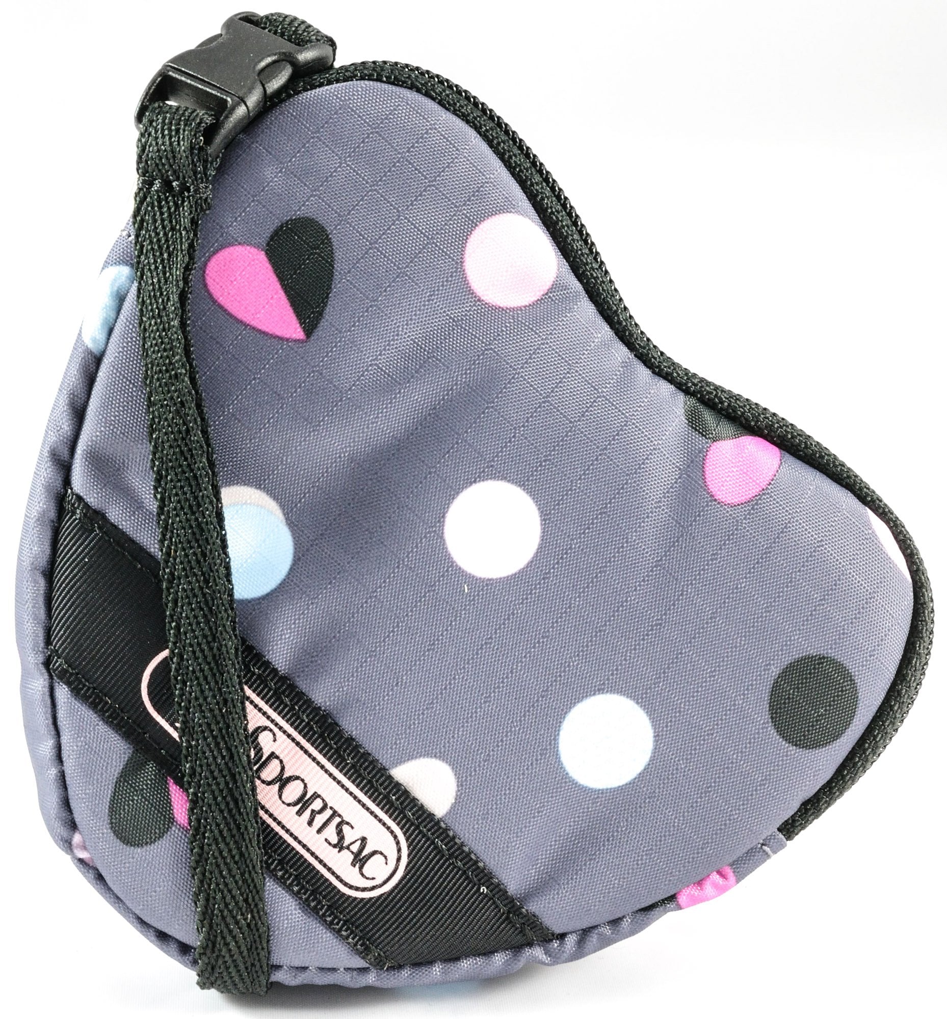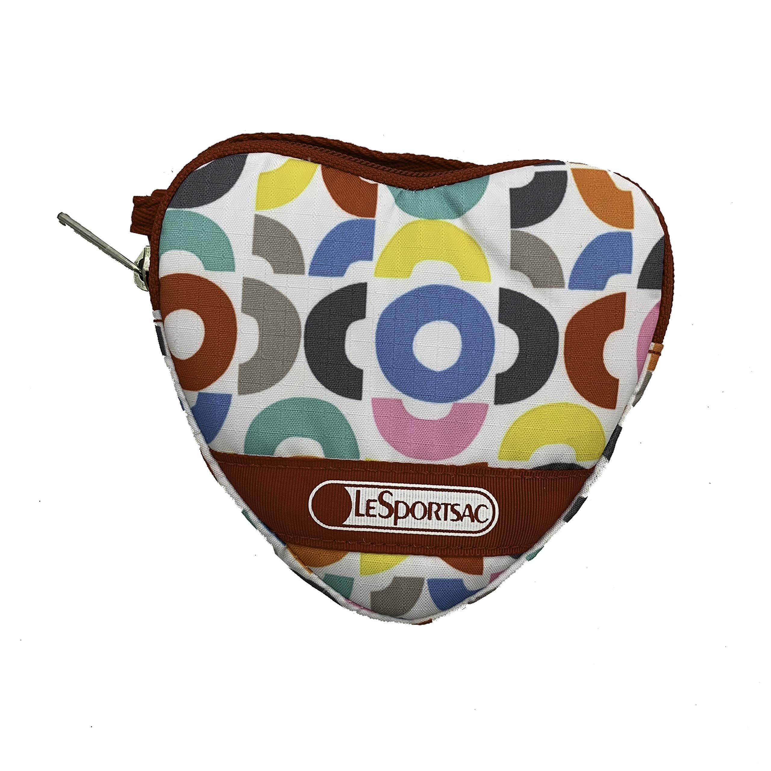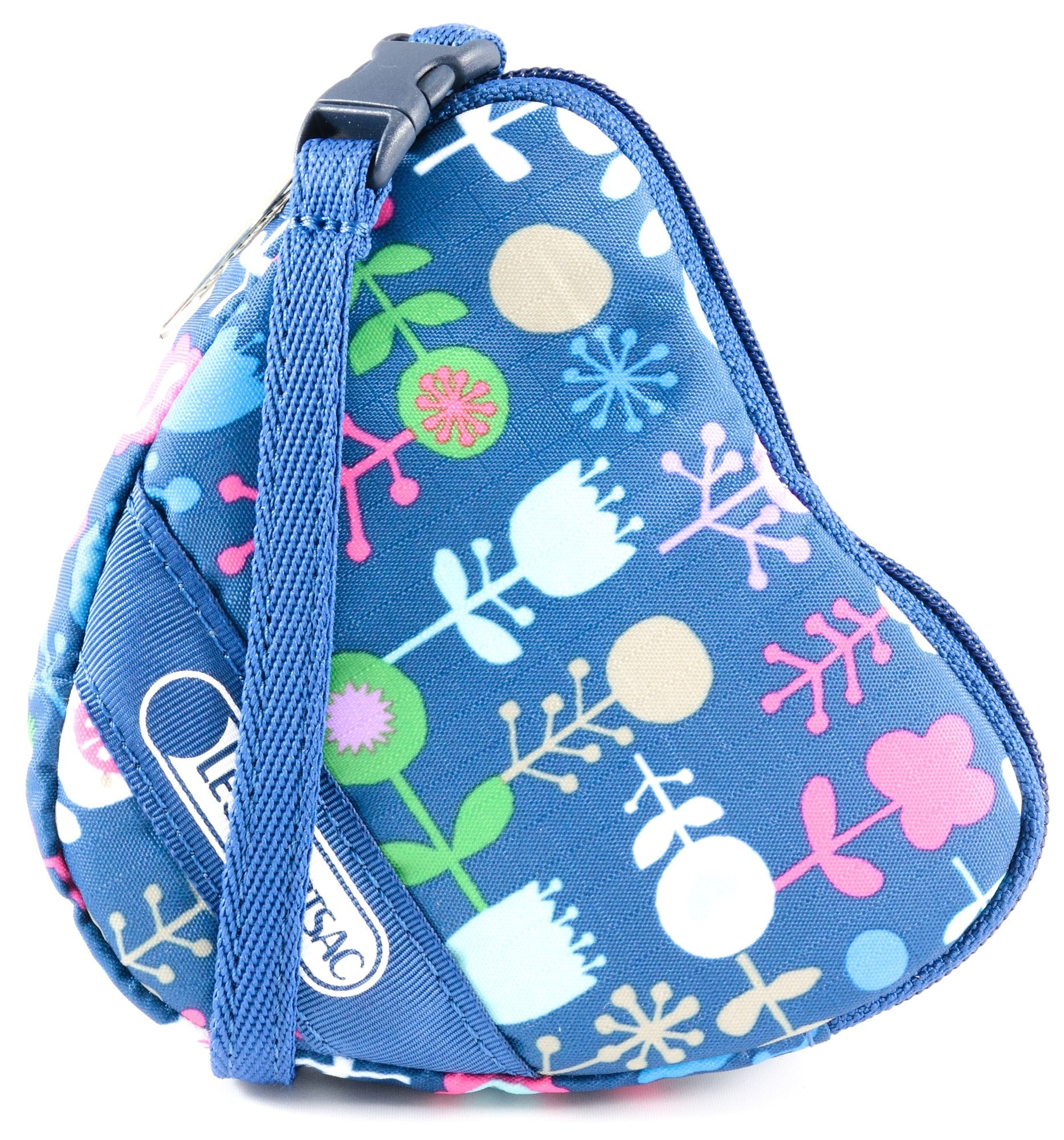 This heart-shaped pouch features logo-print grosgrain banding at the front. Zip closure. Buckle at wrist strap. Logo-lined interior features patch pocket.