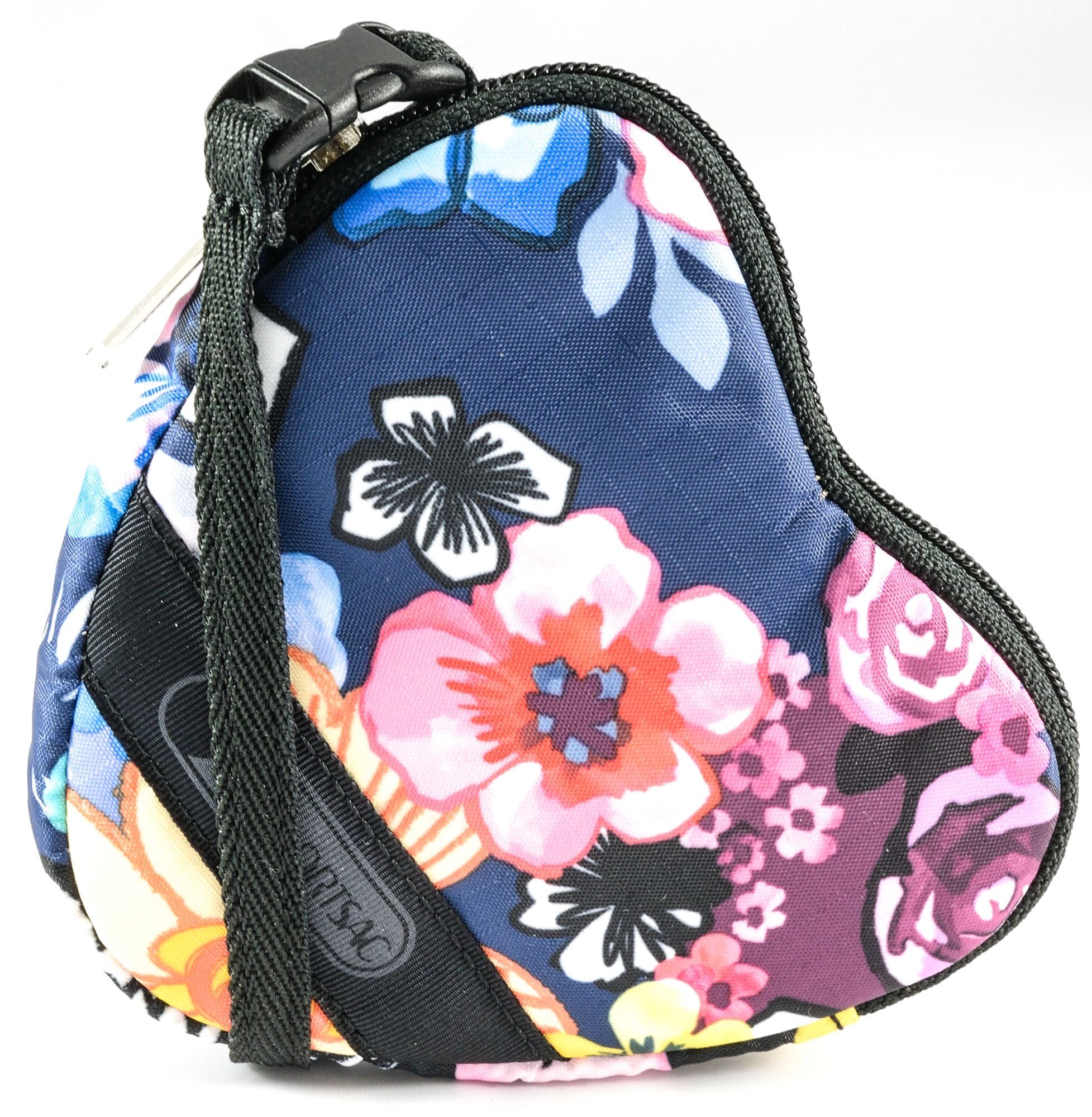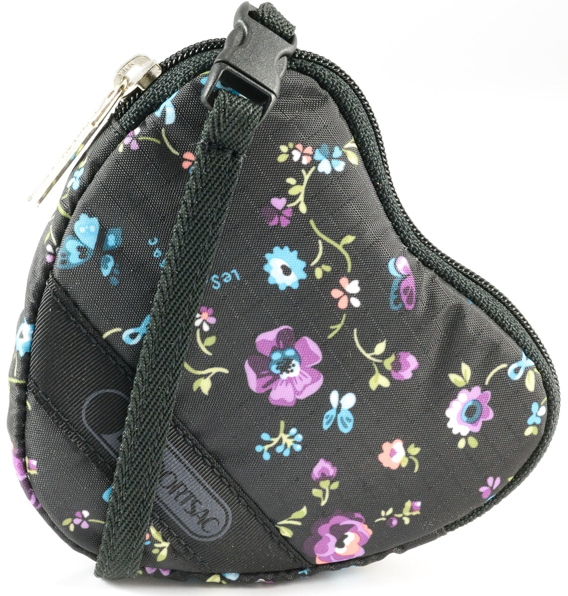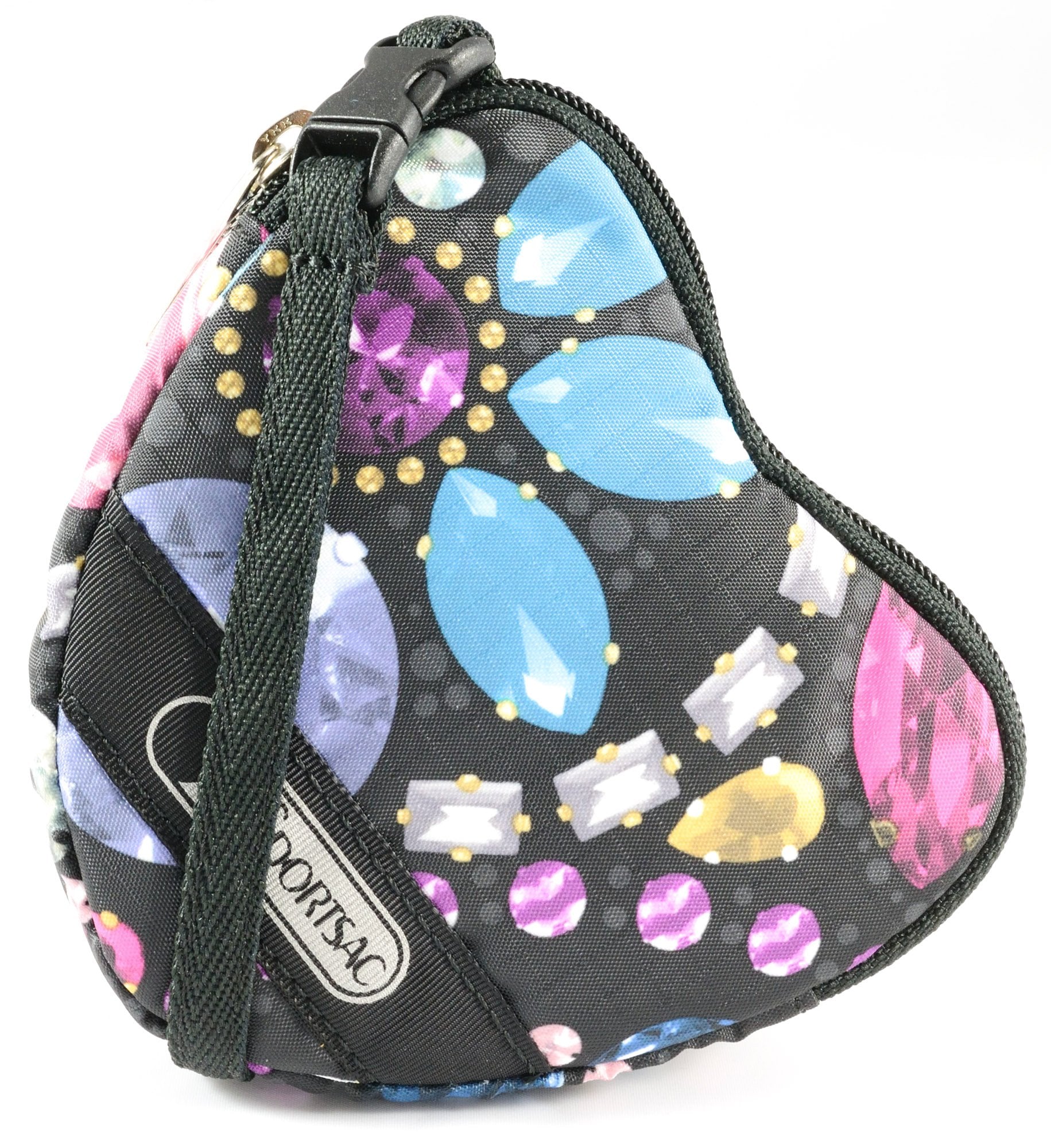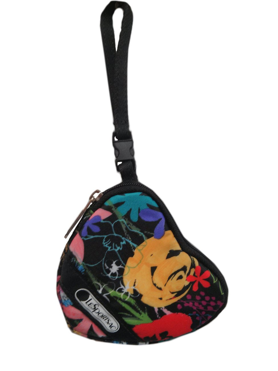 This heart-shaped pouch features logo-print grosgrain banding at the front. Zip closure. Buckle at wrist strap. Logo-lined interior features patch pocket.