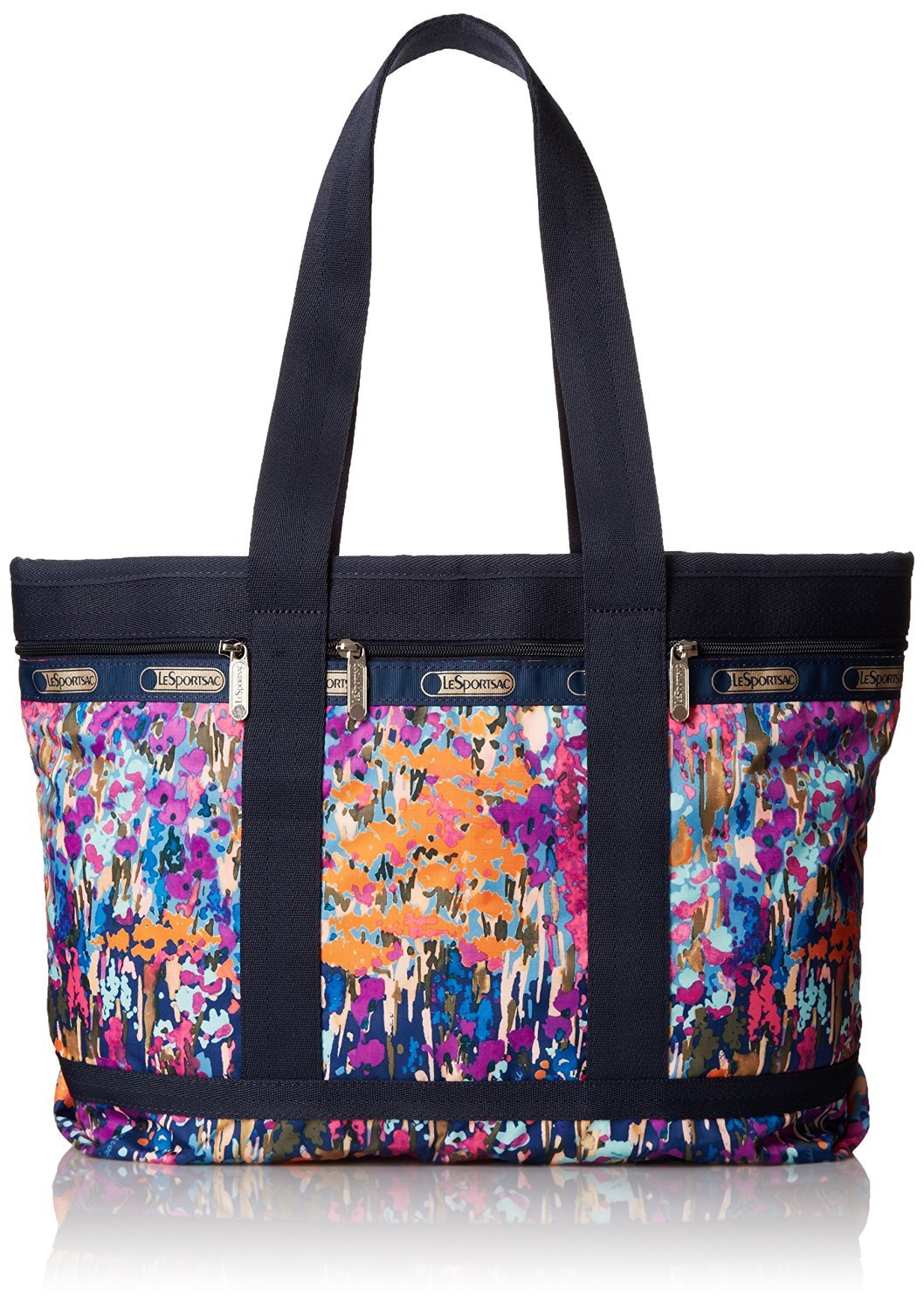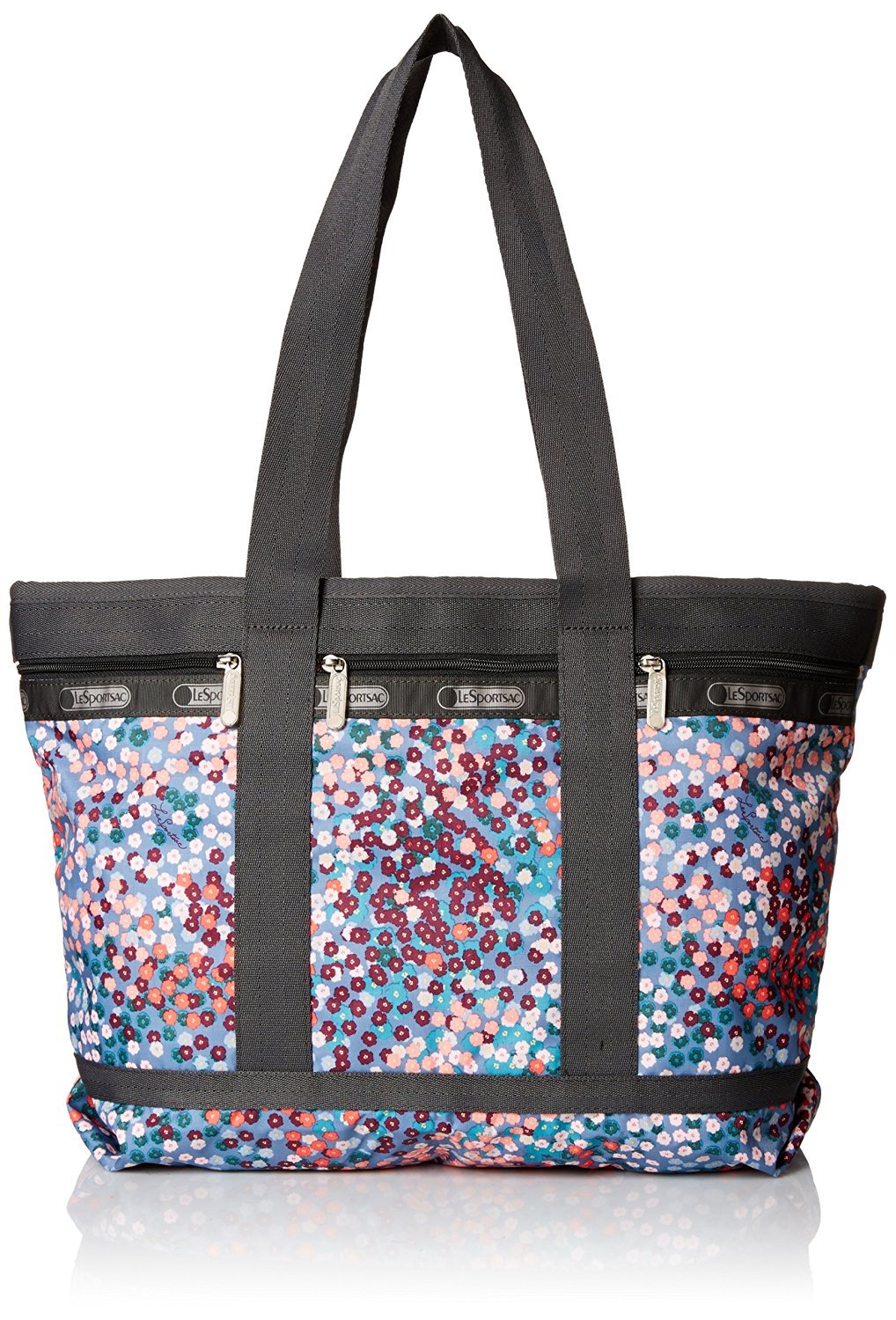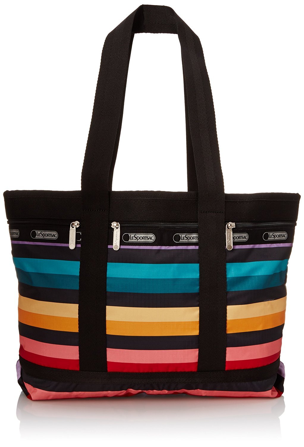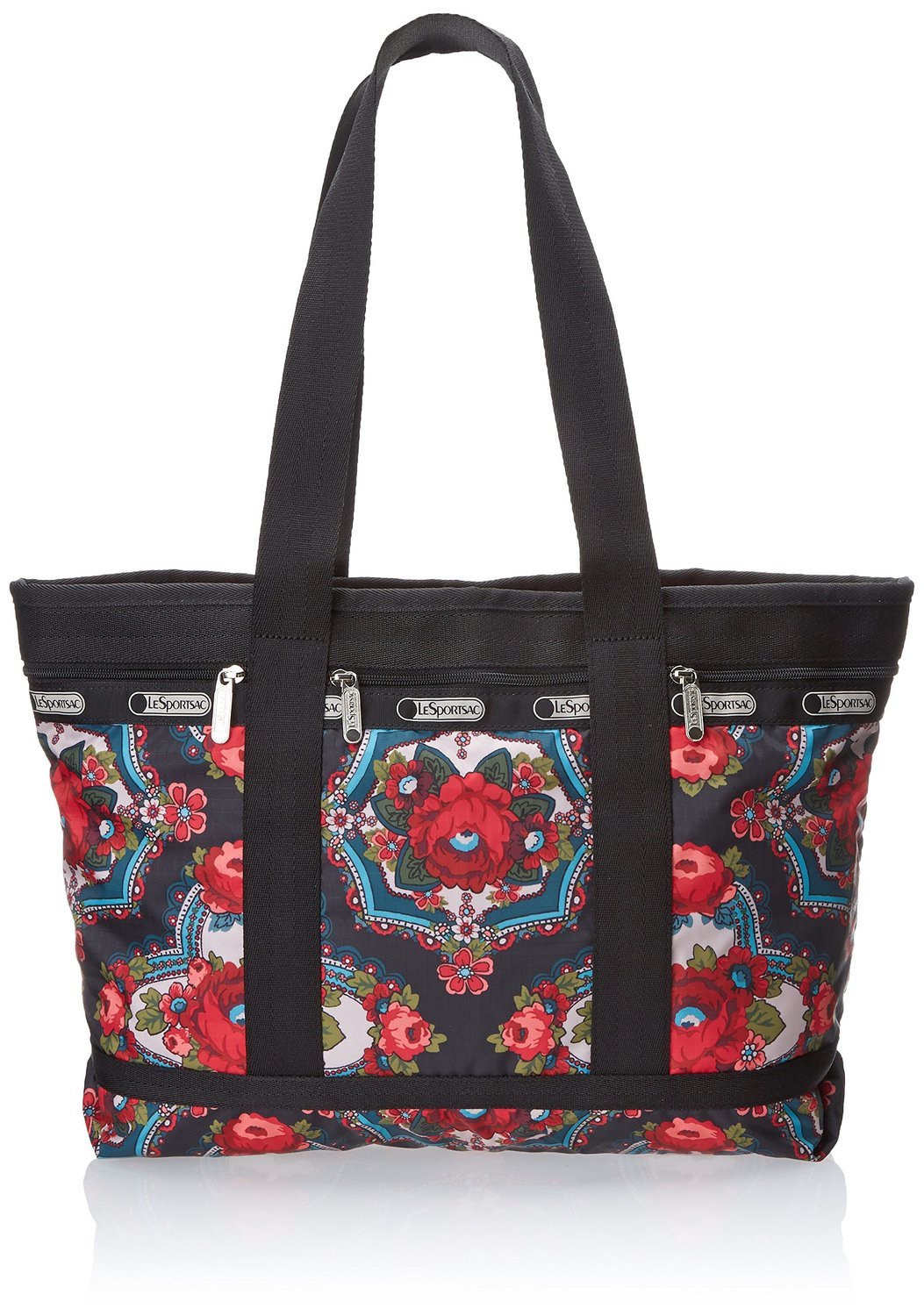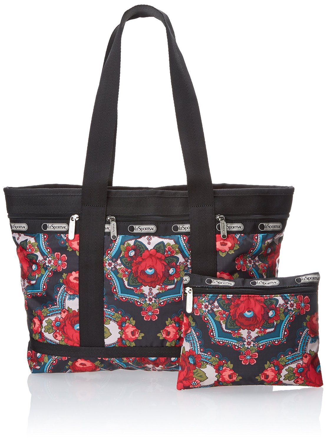 This eye-catching travel tote from LeSportsac will hold all of your things while staying in tune with your playful personality. Its roomy interior and several front compartments make for perfect organization on a weekend getaway. LeSportsac is a quintessential American lifestyle brand of casual, trend-setting nylon bags. Founded in 1974, the company maintains a strong presence around the globe, offering a fashion-forward line of handbags, travel totes, messenger bags, backpacks, attaches and accessories. The lightweight fabric combined with high-performance hardware characterizes its iconic, functional styles available in a wide variety of colors and prints. A leader in the accessories market, LeSportsac continues to offer fresh, innovative new styles that remain consistent in terms of quality and character while partnering with trendsetters around the world.