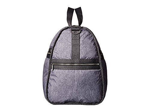 handles with detachable, adjustable shoulder strap. Four exterior zip pockets.