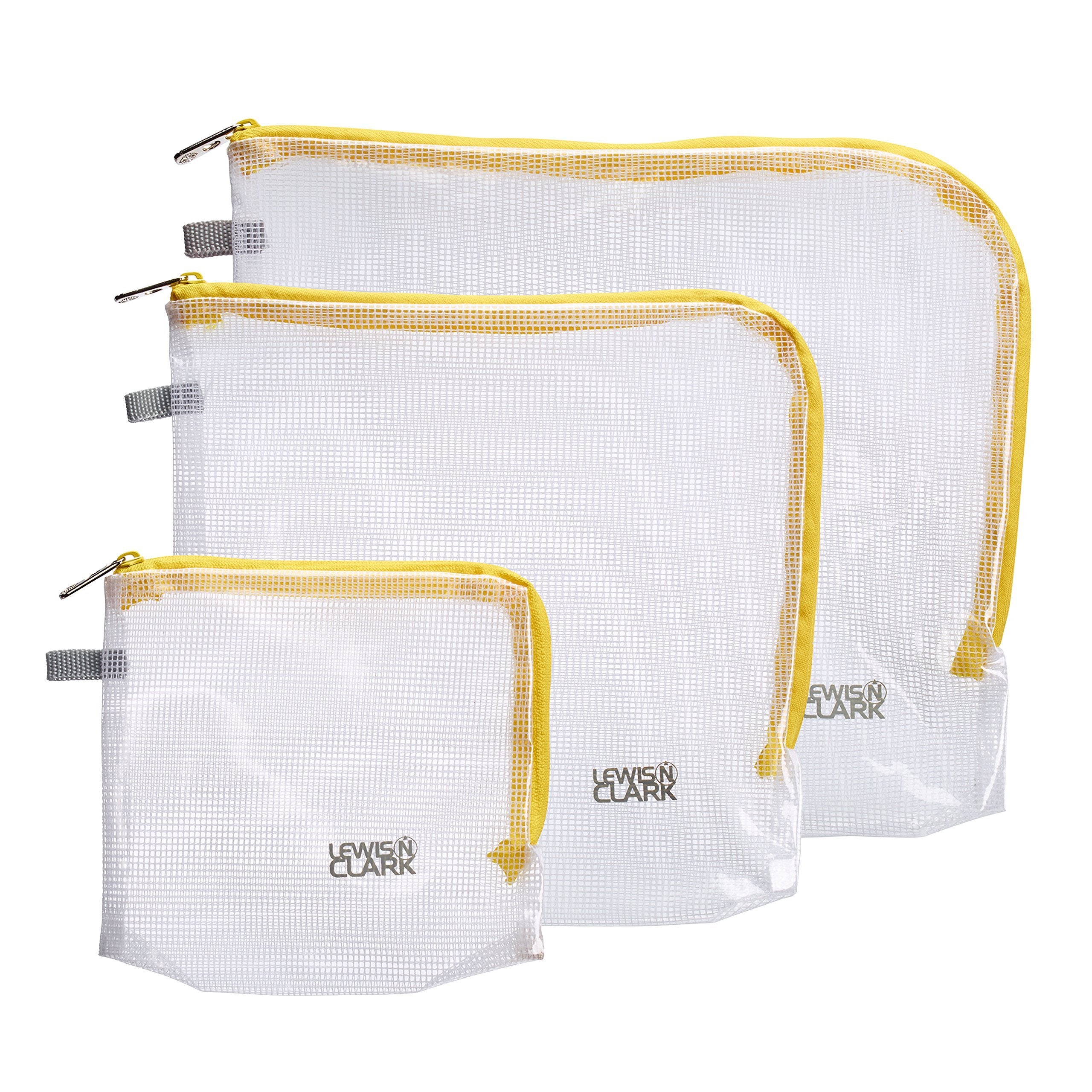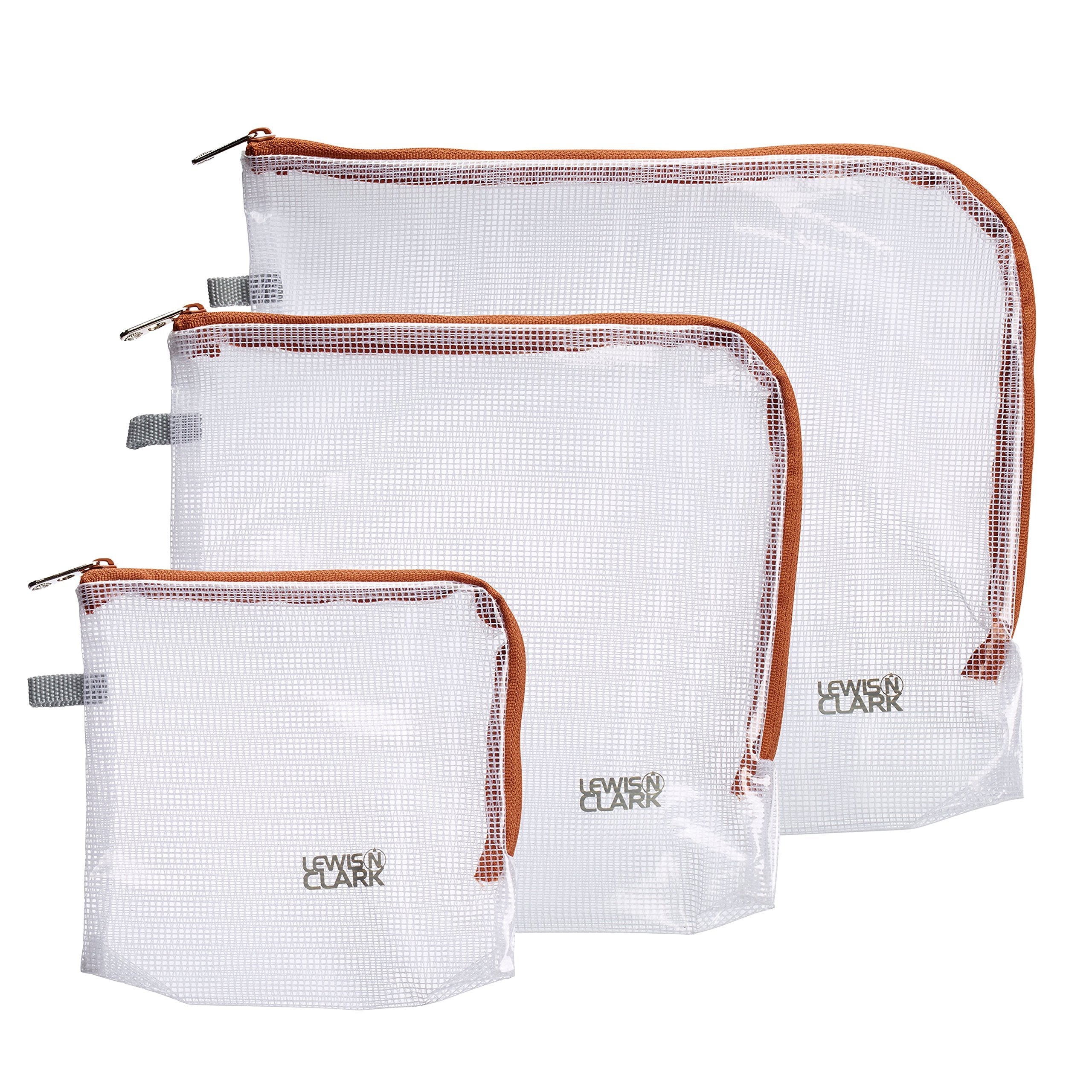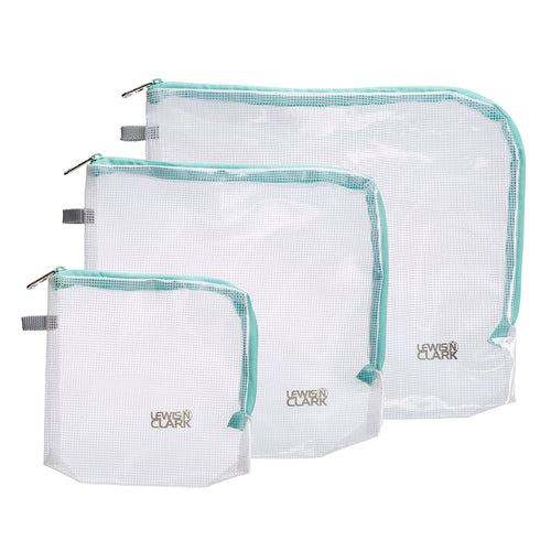 The Lewis N Clark Travel pouch set is perfect for organizing on your nexttrip. These packing envelopes are security-friendly and turn packing chaosinto order. With assorted sizes, youll find a place for everything. Zipperskeep contents secure and printed mesh PVC ensures you can see whats inside.Perfect for organizing personal, household, travel and easy-to-lose items.
