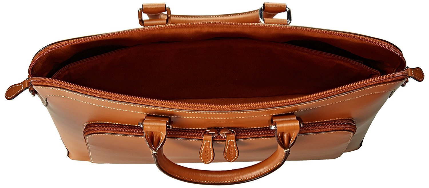 Why shouldnt your laptop bag look as good as a handbag? With an interior padded laptop compartment, along with two other sections, the Brera Briefcase does the trick. Exterior zip closure organizer panel gives you easy access to your cell phone, business cards, and pens. Quite simply chic, timeless beauty, refined and elegant in smooth grain Italian leather.