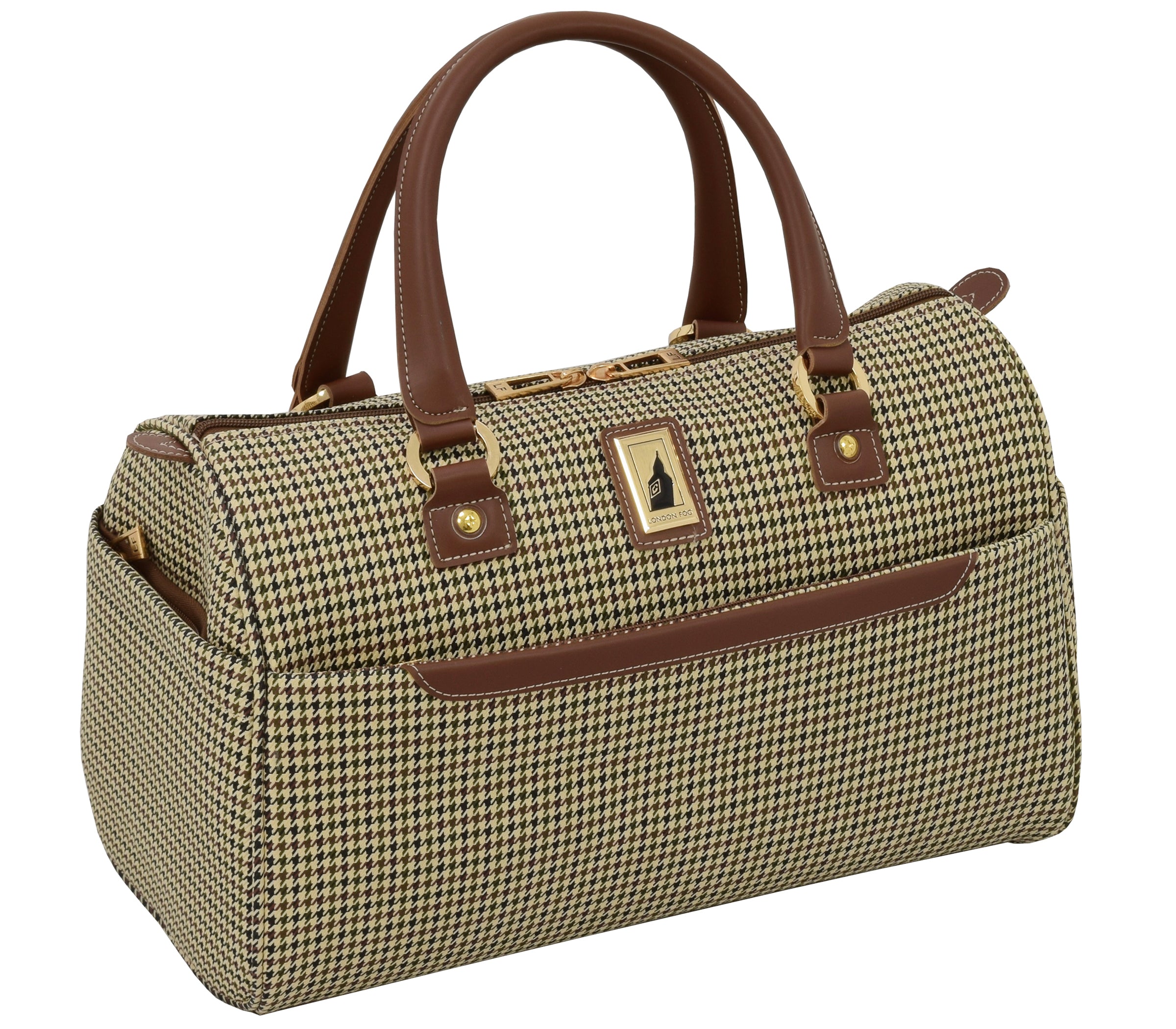- Back of satchel slides over upright handle for easy carrying or can be used as an additional pocket