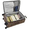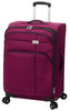 • Interior has 2 integrated shoe pockets & 2 zippered pockets. Spinner uprights expand 2" for additional packing capacity. Convenient top, side & bottom carry handles for easy lifting.