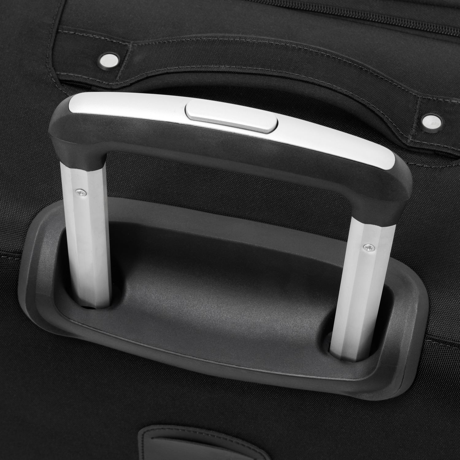 • Trolley handle has aluminum channel tubes for added strength. 8-wheel recessed 360 multi-directional wheels mounted to chassis for strength & stability. Deluxe London Fog stripe lining.