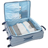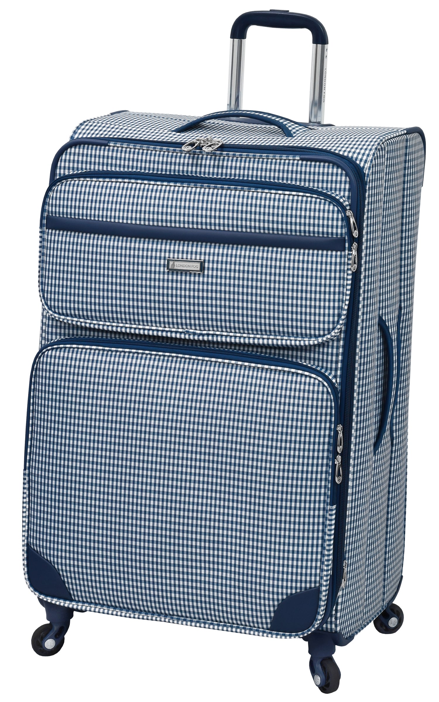 This iconic London Fog Hampton luggage collection is a beautiful travel set to accompany you on your next trip. The woven Jacquard blue/white gingham checkered luggage is hyper-light and includes structural features such as a chassis with grid base for superior durability and strength. The low profile 360 degree multi-directional wheels mounted to base for stability and ease while traveling with your luggage. The grip handle is comfortable and has many locking positions that allow you to feel comfort and ease while traveling. The case has the ability to expand 2" which allows for extra packing capacity. Top and side grab handles on the exterior for convenience.