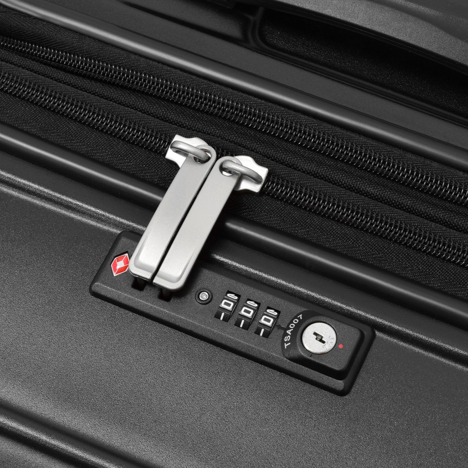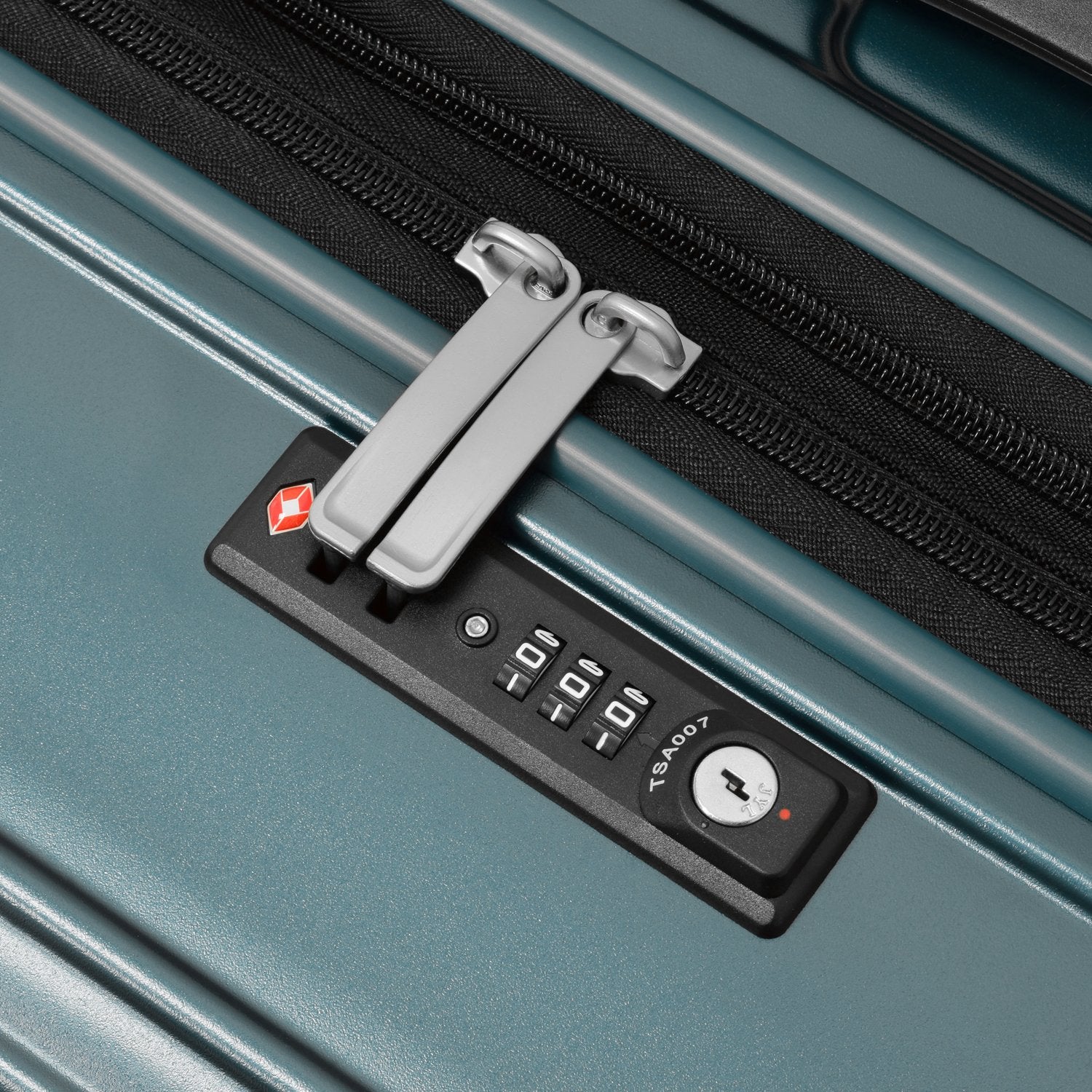 • TSA approved locks, flush mounted for strength. Side feet and corner guards for extra protection.