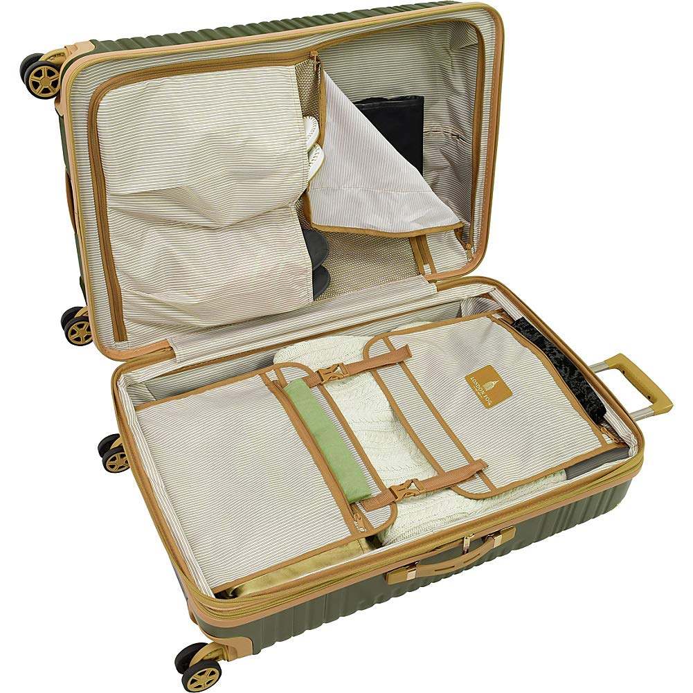 • 8-recessed spinner wheels with Control Track Self Aligning Technology. With the sound of a click, you'll know that the wheels are adjusting into a straight line to help ensure easy maneuvering throughout your travels. Flush mounted TSA approved combination locks. Full London Fog stripe lining.