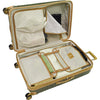• Interior has two zippered dividers, two shoe pockets & zippered mesh pocket. Packing cradle for organization & securing packed items. Spinner cases expand 2" for additional packing capacity.