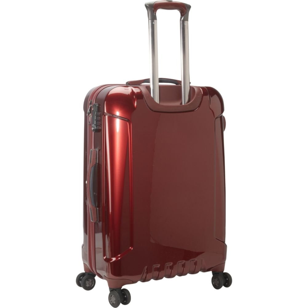 • Spinner suitcase. Zippered lid compartment with mesh pocket. Ultra-lightweight polycarbonate.