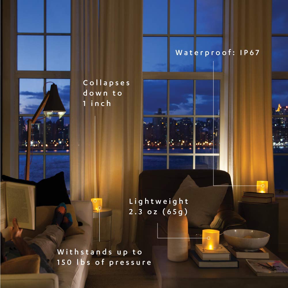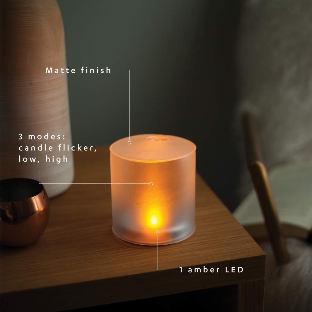• BRIGHT AND LONG LASTING. With 1 amber LED emitting a flameless flicker through a matte finish, this light provides up to 18 hours of light on a single charge, so you can relax long into the night.