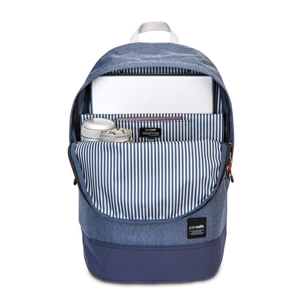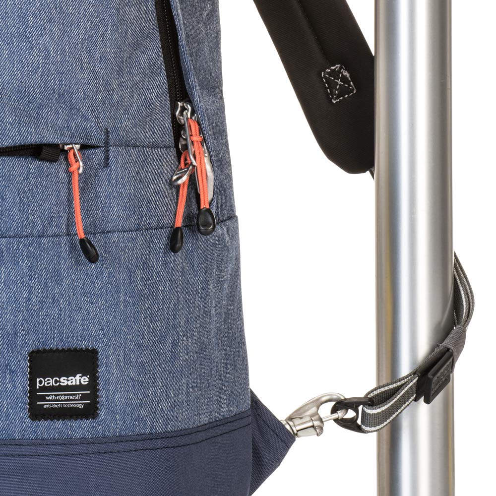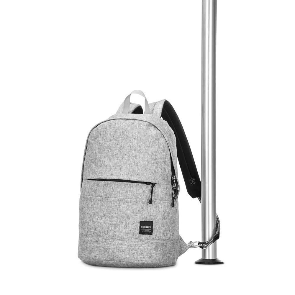 Color:Black The Slingsafe LX300 from Pacsafe is the perfect anti-theftbackpack for any city or travel inspired occasion. Simple and unstructured,the pack has a variety of anti-theft features built into it to help keepbelongings safe. The bags fabric is embedded with eXomesh Slashguard, astainless steel wire mesh that protects your gear from a quick slash-and-runtheft. The Turn and Lock Security Hook allows you to secure the bag to afixture for added security, and the ultra-strong wire-imbedded Dyneema webbingstraps help prevent cut-and-run theft. The RFIDsafe blocking pocket helpsprevent your data (such as from e-passports, credit cards, and key cards) fromfalling into the wrong hands, while the smart zipper security makes itdifficult for pickpockets to quickly access the front and main pockets. Thepadded backpack straps provide extra comfort when carrying heavier loads.Weighing just 16 ounces, the Slingsafe LX300 has a laptop sleeve compatiblefor a 15-inch laptop, and leaves plenty of room to organize your dailyessentials. Pacsafe is all about secure mobility. With a wide range of stylishadventure backpacks, everyday bags, womens bags, camera bags, luggage, andtravel accessories, Pacsafe lets you unpack the stress of protecting yourgear, and instead, pack peace of mind.
