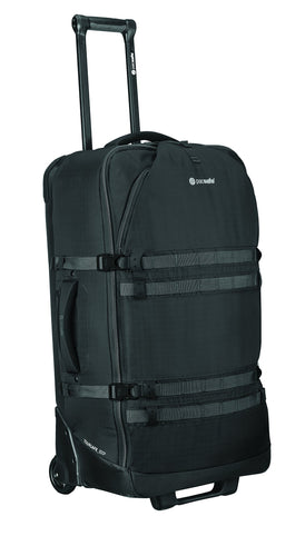 Color:Black The Toursafe EXP29 anti-theft wheeled gear bag from Pacsafe isdesigned with adventure in mind. With security technology built into the bag,the durable and reliable 83-liter Toursafe EXP29 will help keep your gearprotected on your next trip. The bag's fabric is embedded with eXomeshSlashguard, a lightweight flexible, stainless steel wire mesh that protectsyour gear from a quick slash-and-run theft. The ToughZip double-layeredzippers help prevent opportunistic thieves from breaking into the bag with asharp object, and the interlocking zippers secure to the Roobar lockingsystem, a central lockdown point that secures both pockets with a singlepadlock. For extra security, the 3mm stainless steel locking cable can belocked to the Roobar and around a secure fixture. The high clearance and highperformance wheels with protective kick plate ensure the Toursafe EXP29 cannavigate even the roughest terrain, while the dual bar aluminum handle systemis comfortable and durable. With a main compartment and front pocket withinternal organization, the bag will help keep gear organized and secure onyour next adventure. Pacsafe keeps travelers one step ahead of the game bykeeping their gear secure from opportunistic thieves with a wide range ofstylish adventure backpacks, leisure bags, urban bags, womens bags, andcamera bags, as well as luggage and travel accessories.