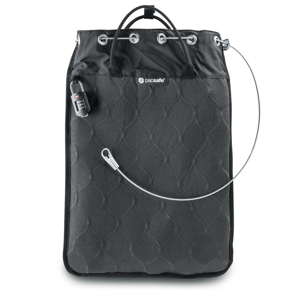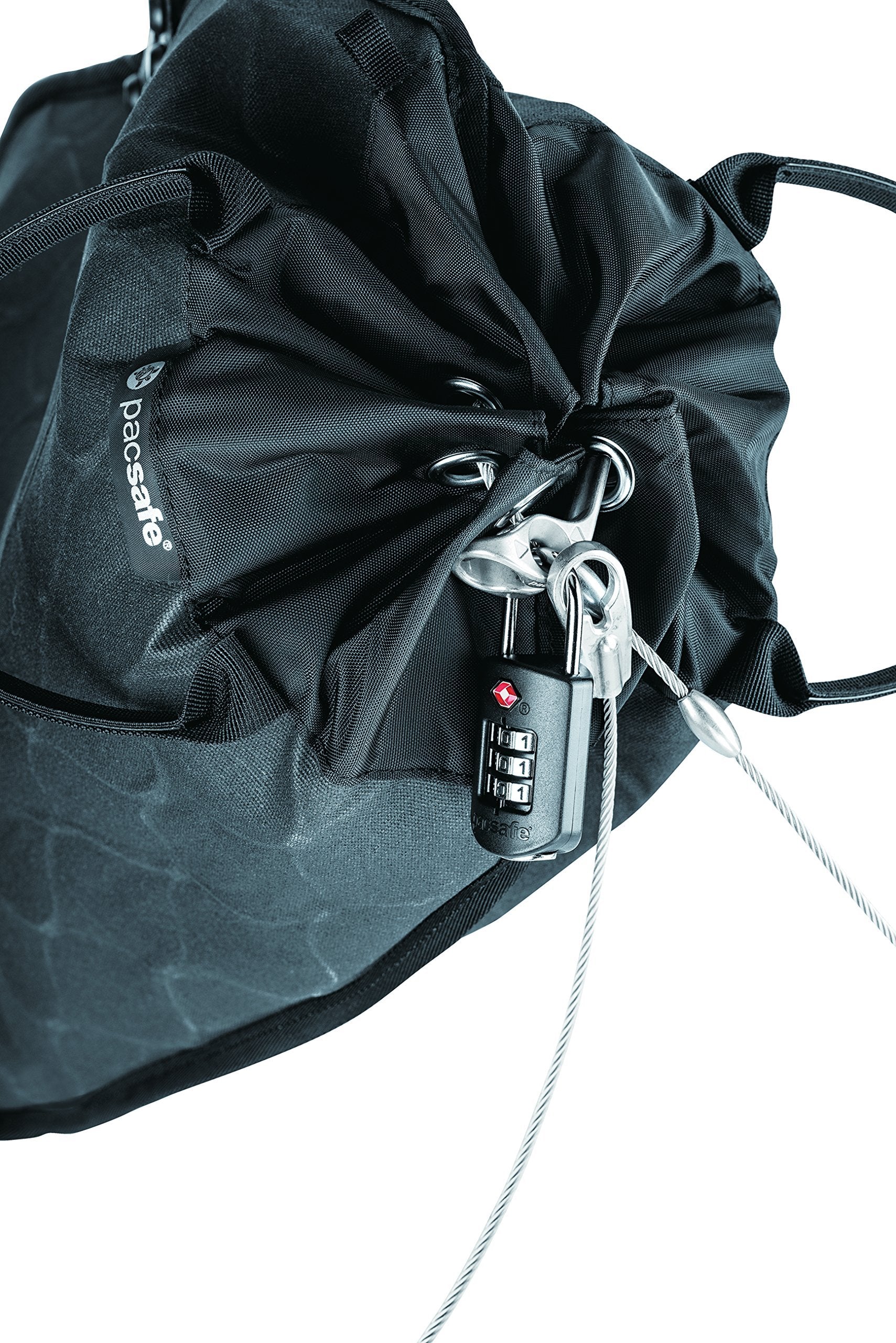 | Care Cleaning | To clean your Pacsafe product we recommend the following: Step 1: Mix warm water and mild detergent in a bowl. Step 2: Take a white cloth and put it in the bowl. Step 3: Wring and squeeze excess water. Step 4: Gently wipe the bag with the cloth. Step 5: Repeat steps 1-4 until satisfied it is clean. |