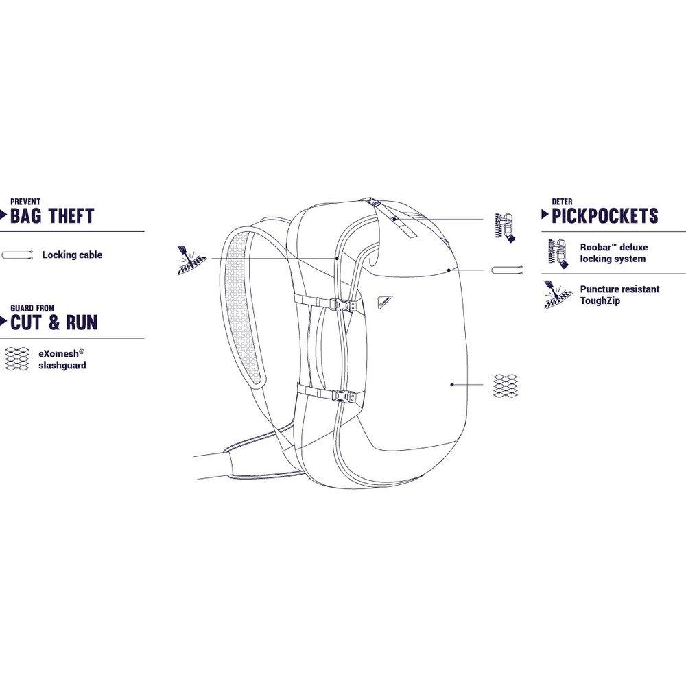 • Secure carry-on size 45-liter travel pack with five anti-theft features built in for peace of mind travel; book style opening of main compartment makes all gear easily accessible