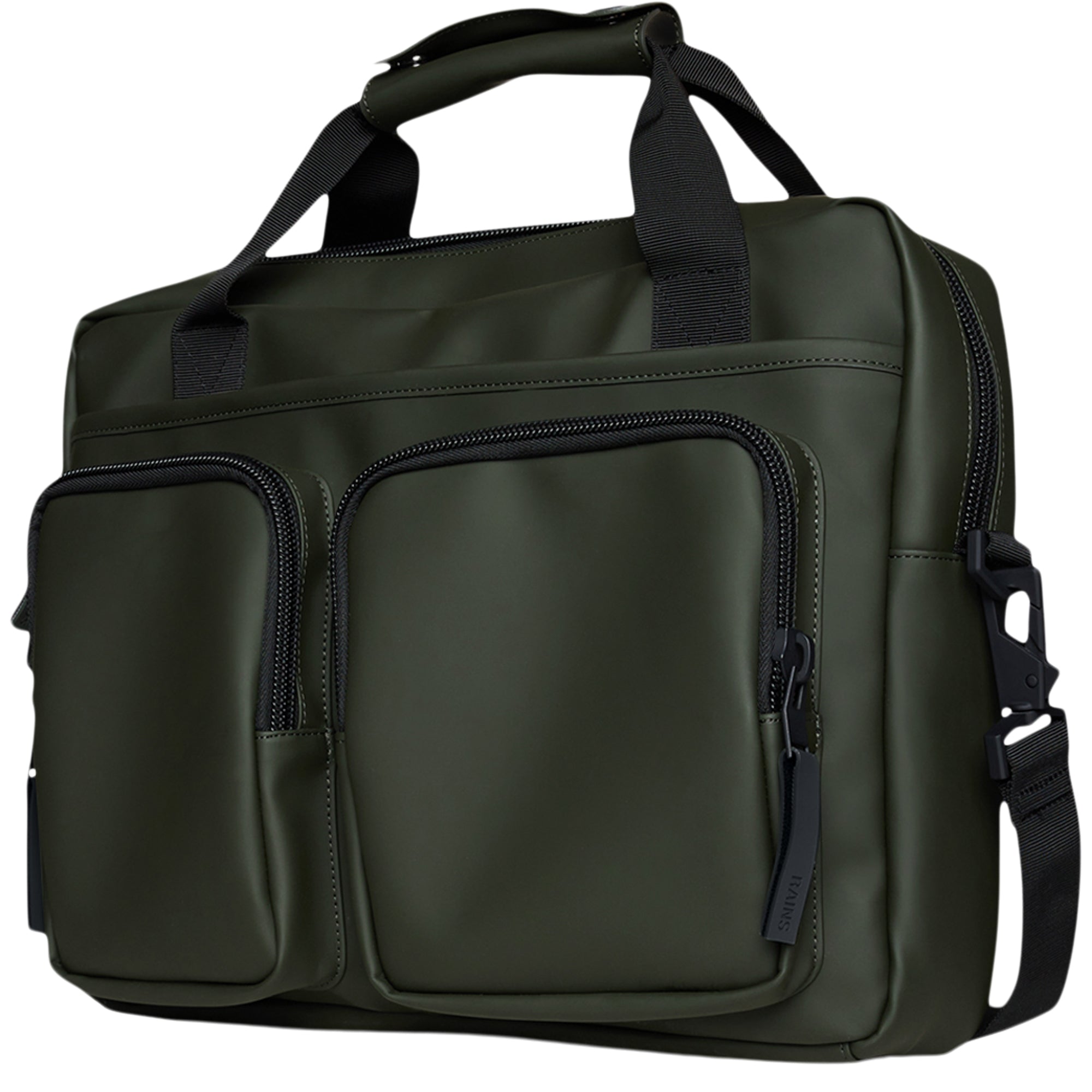 • Constructed from Rains signature waterproof PU fabric, ensuring durability, carrying strength, and a sleek appearance