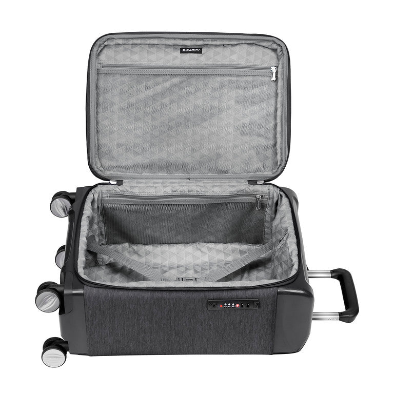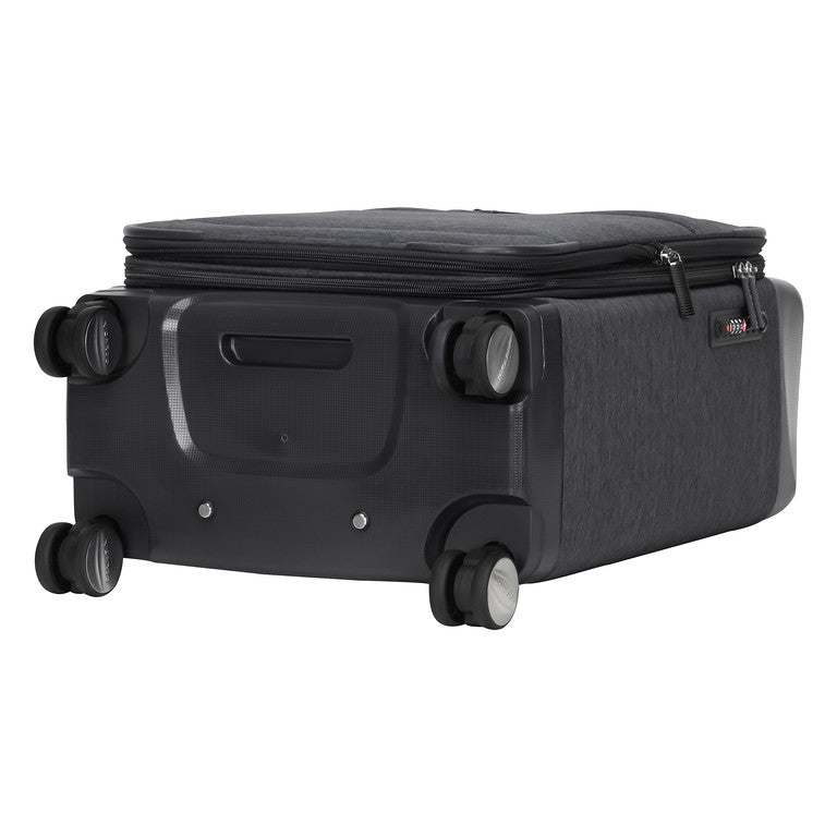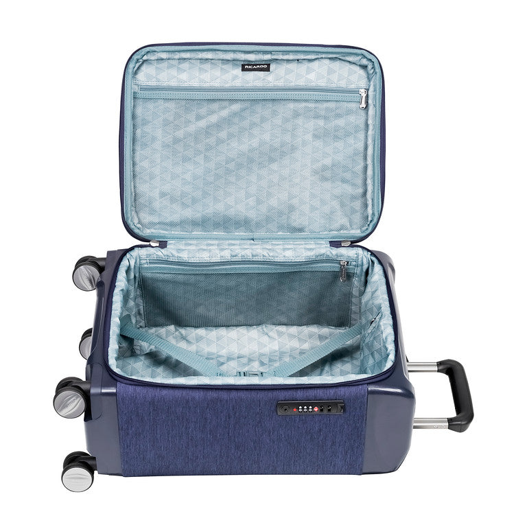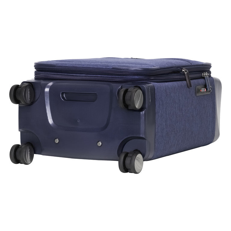 This lightweight carry-on spinner case, from our Coastal hybrid collection is ideal for a weekend getaway. The rigid, impact-resistant shell is clothed in rugged ripstop fabric and will keep your belongings safe from the squeeze of the overhead bin. This easy-to-maneuver case features two exterior zip pockets that allow for quick-access storage of your passport, boarding pass and other documents, while inside, mesh pockets and tie-down straps help keep your wardrobe secure and wrinkle-free. The smooth-glide spinner wheels are detachable for painless repair and storage.