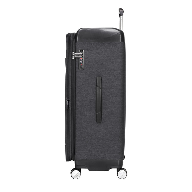 You've got big plans and this large hybrid spinner suitcase, from the Coastal collection, is ready to roll with you. Wrapped in soft, marled fabric, the lightweight, impact-resistant polypropylene shell provides structure to keep your belongings safe from the stresses of travel. The sturdy retractable handle allows for superior control and the smooth-glide dual spinner wheels are detachable for painless storage and repair. Designed for longer trips, this expandable suitcase boasts a generous interior packing space and smart organizational features that deliver an effortless travel experience.