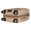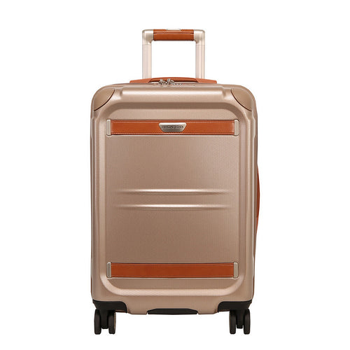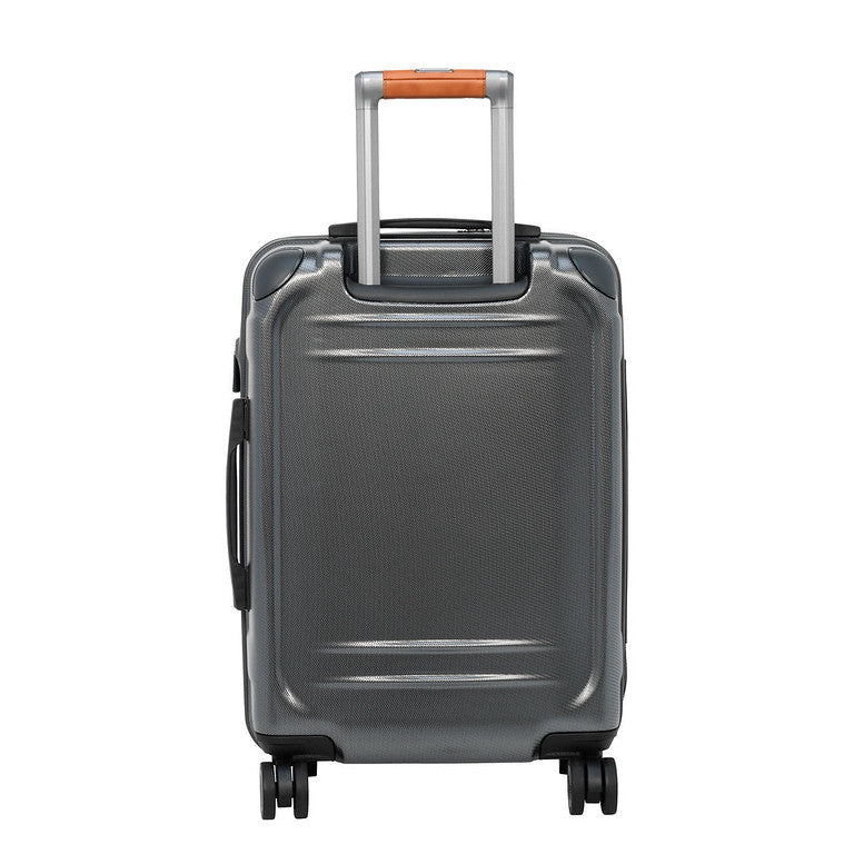 • 100% virgin polycarbonate outer shell made from Makrolon by Covestro offers lasting durability; protective corner guards at high stress points protect against impact. The internal frame assembly delivers resilient structure at a light weight. Contrasting leather-look accents add rich detail. Multi-stage retractable handle with ergonomic grip promotes maneuverability; custom 360 dual spinner wheel system glides in any direction enhancing stability and minimizing effort over a range of surfaces.