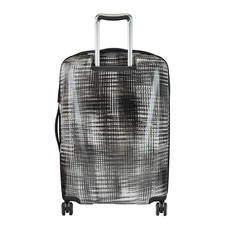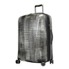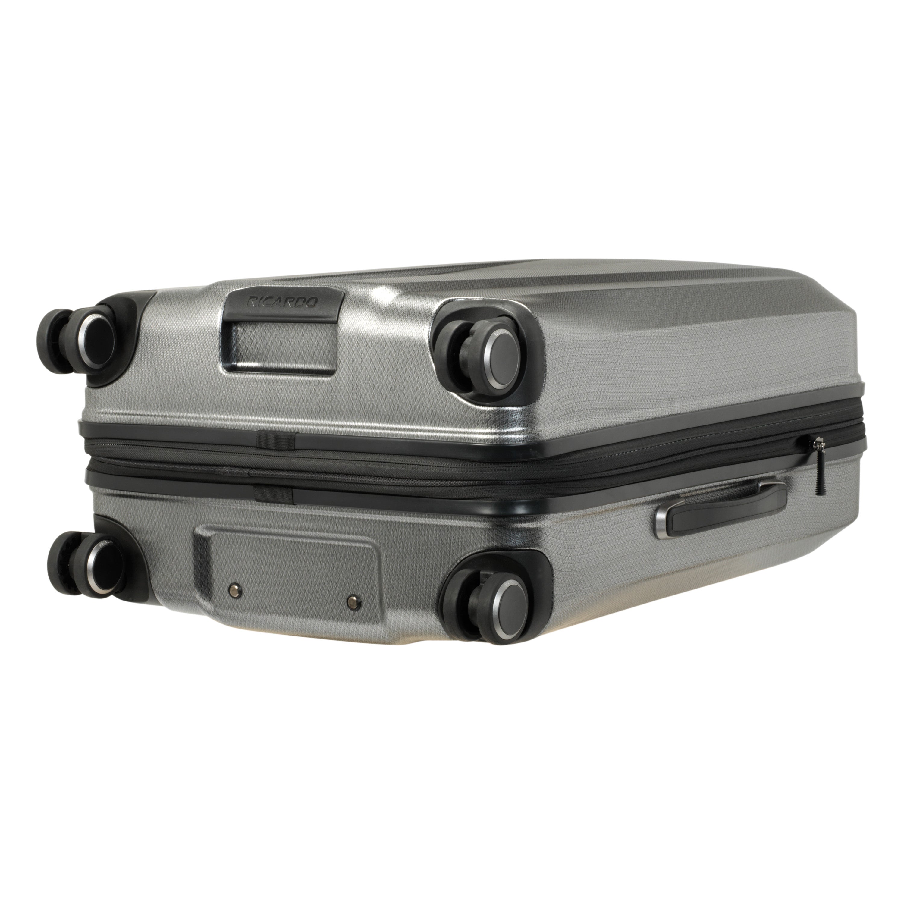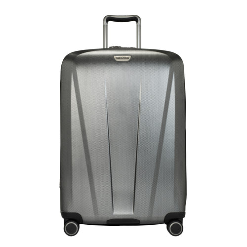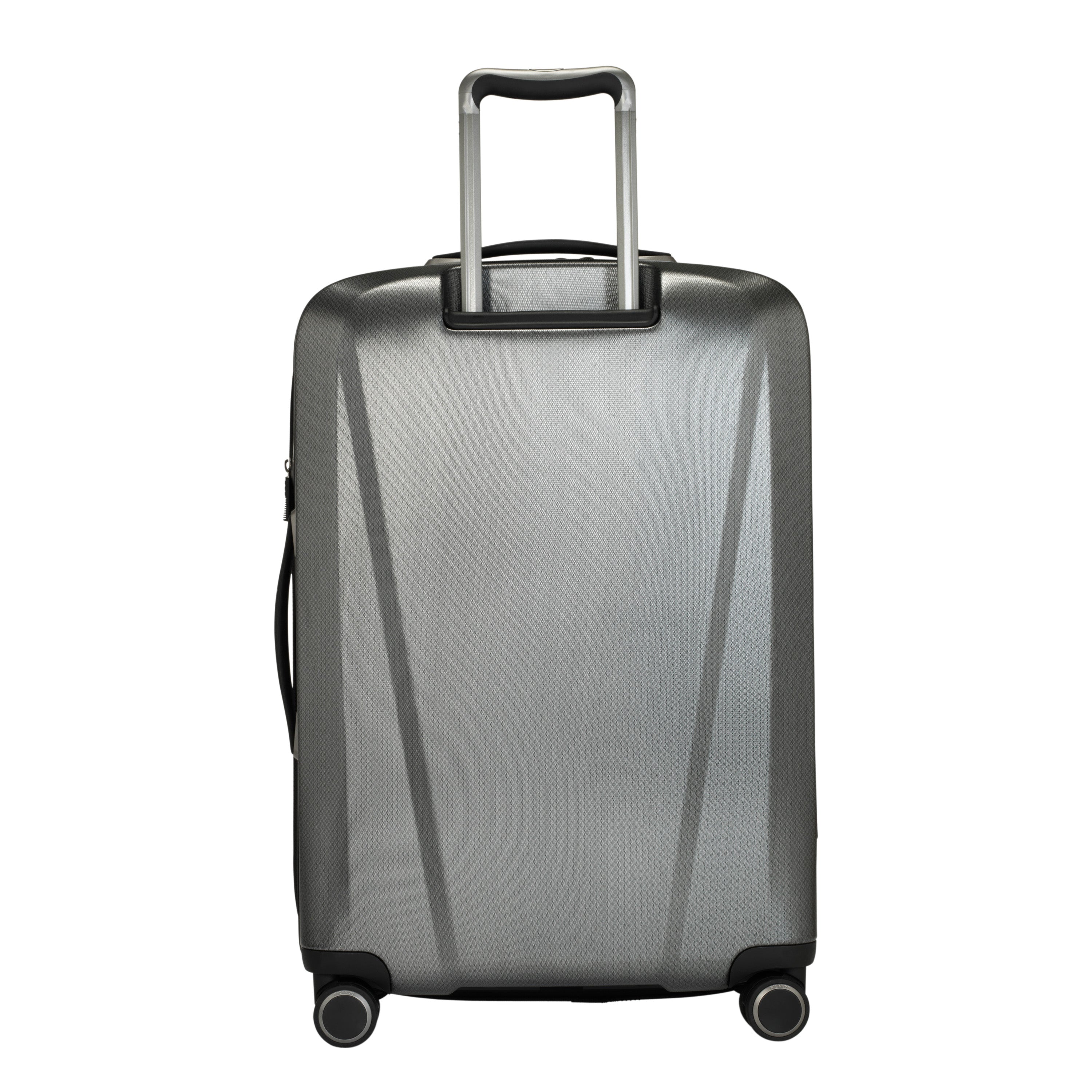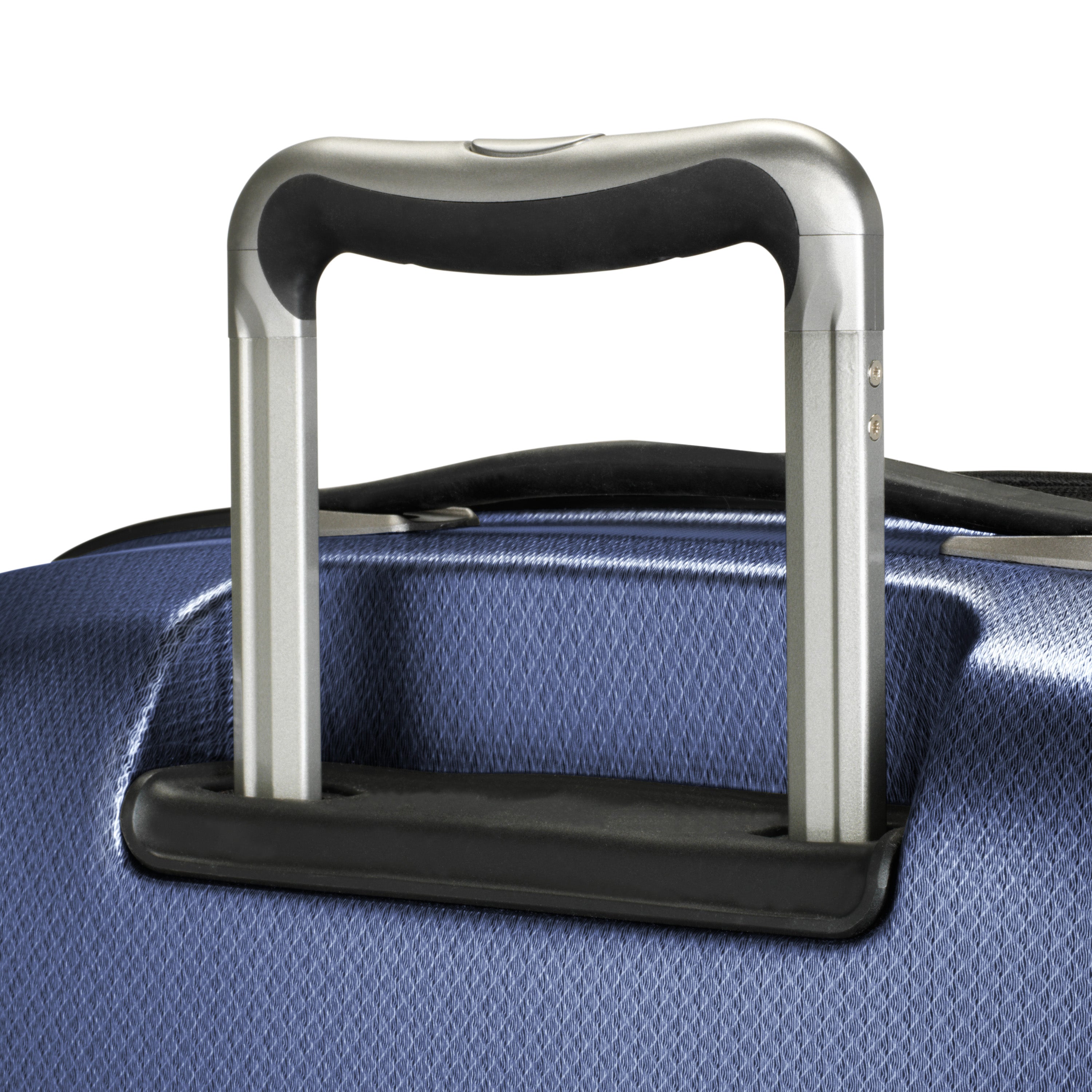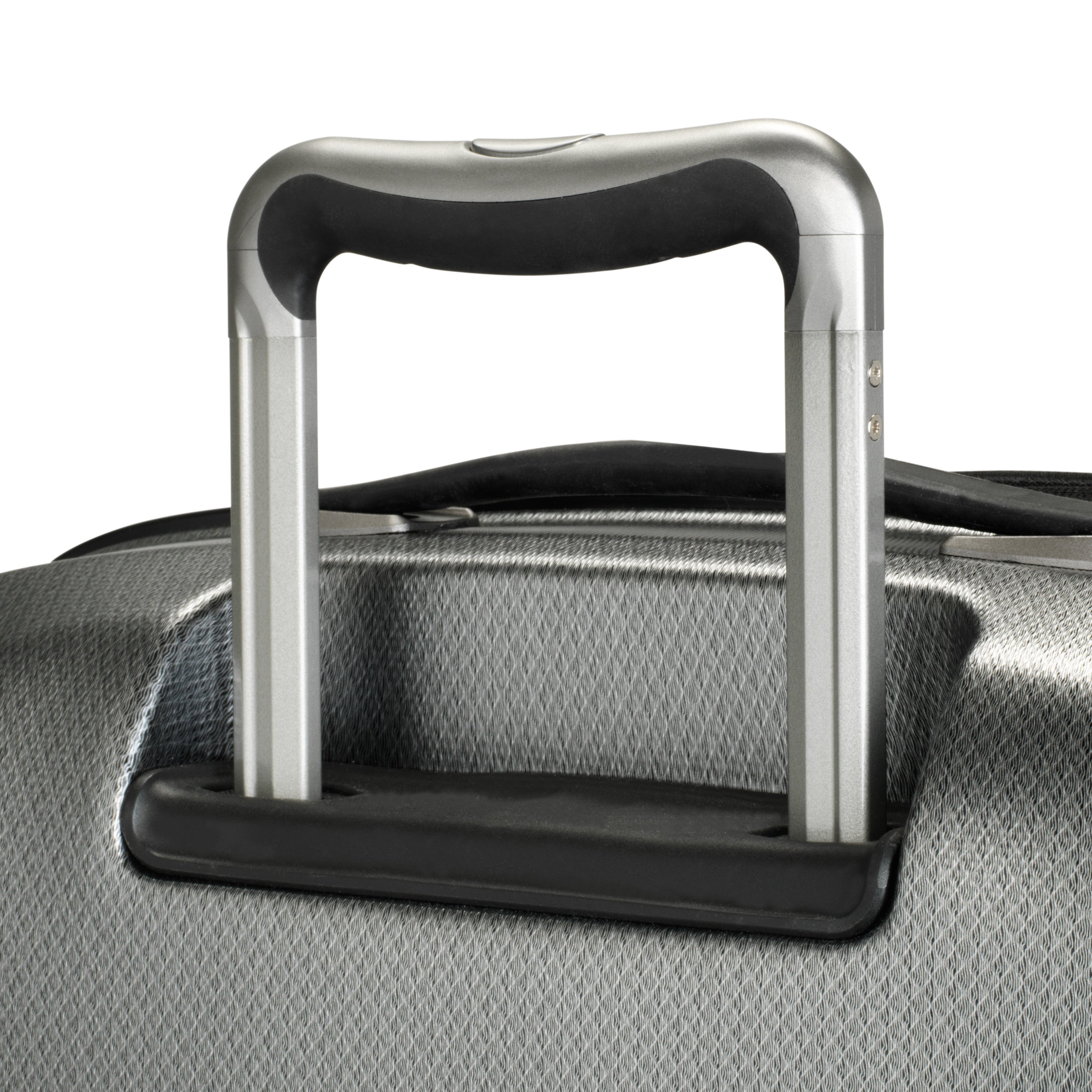 • The polycarbonate alloy exterior resists damage from impact. This lightweight material has also been texturized for scratch resistance. Patent-pending multistage retractable handle fits ergonomically in hand to get around easily with less arm fatigue. Bottom grip and top and side carry handles with soft-rubber grips promote easy lifting and positioning.