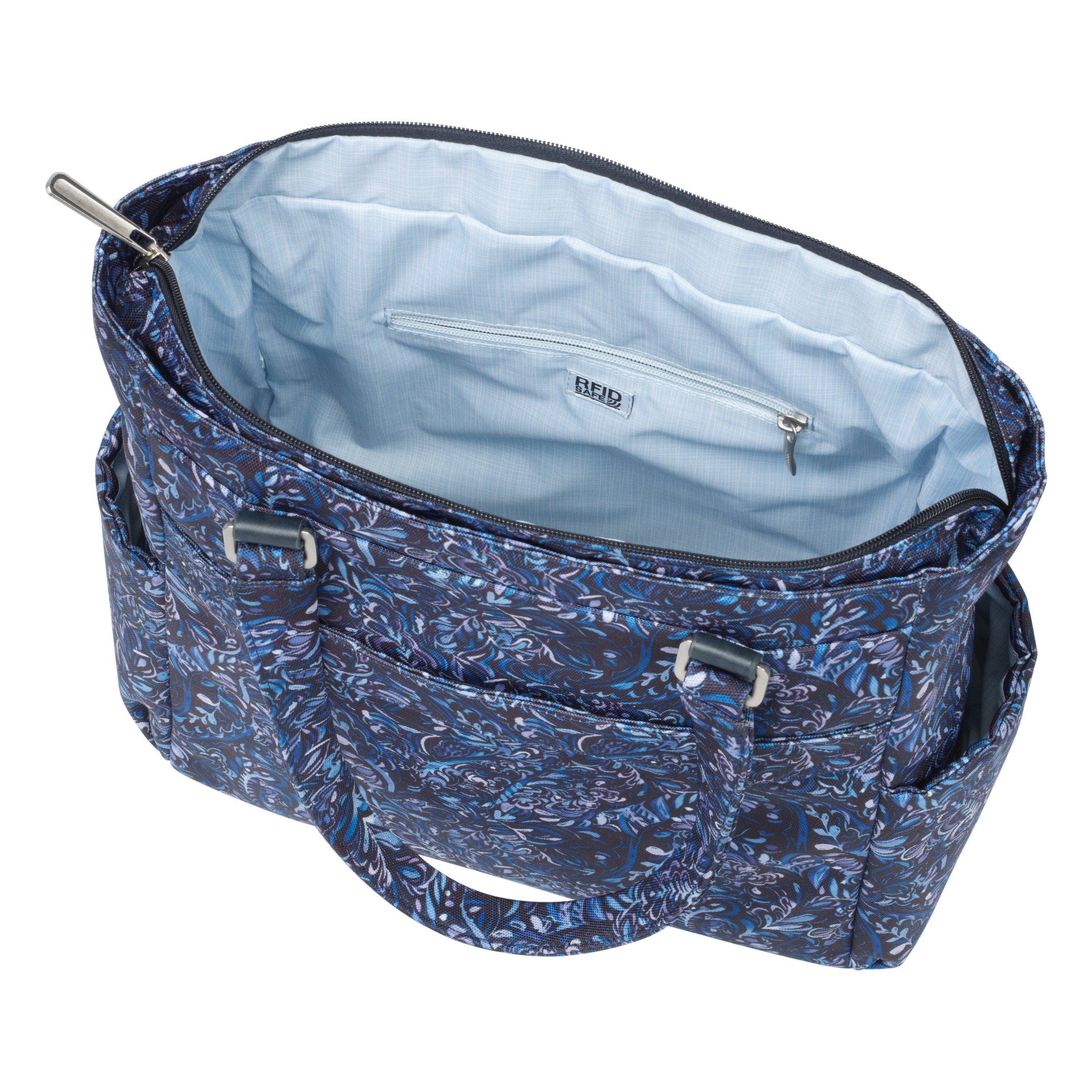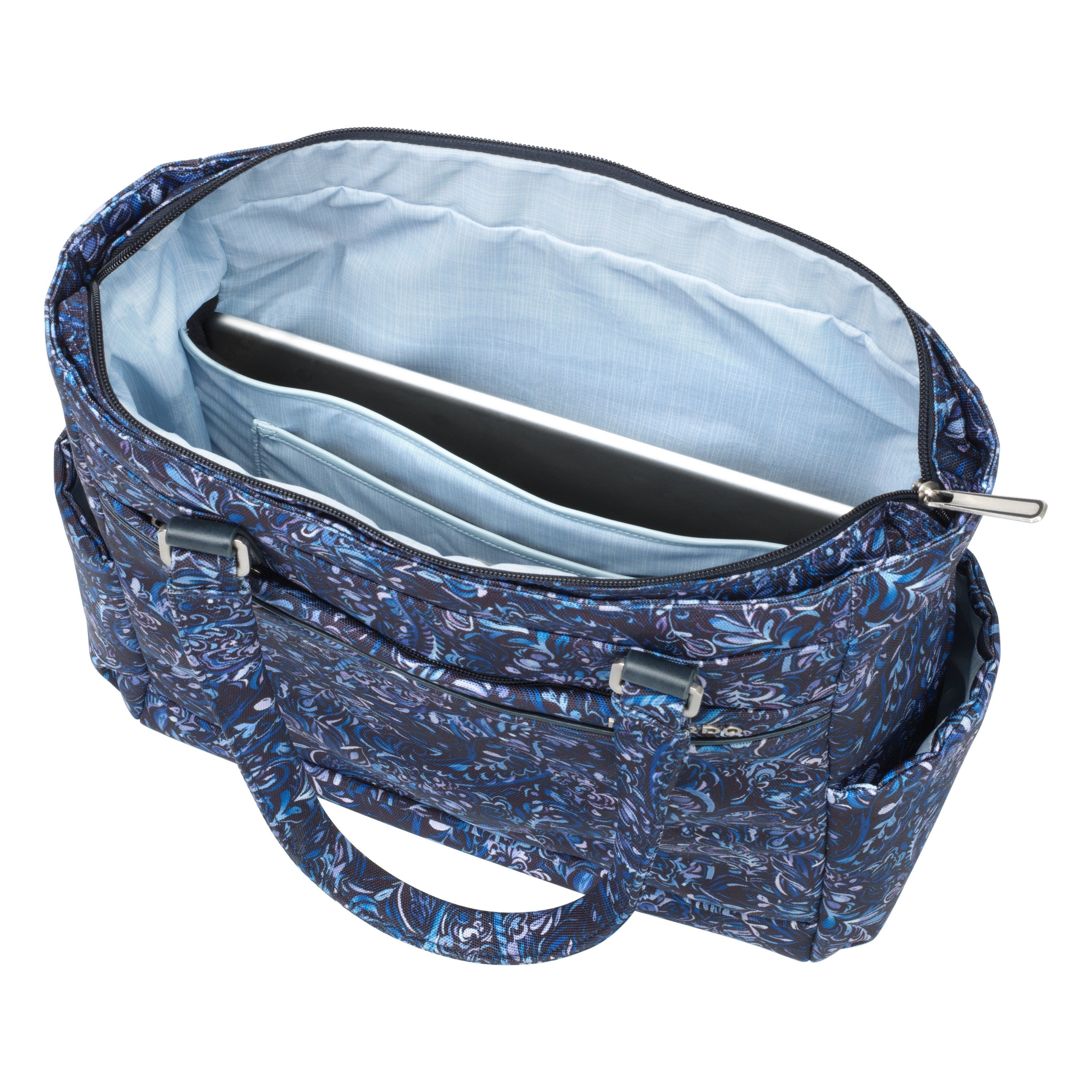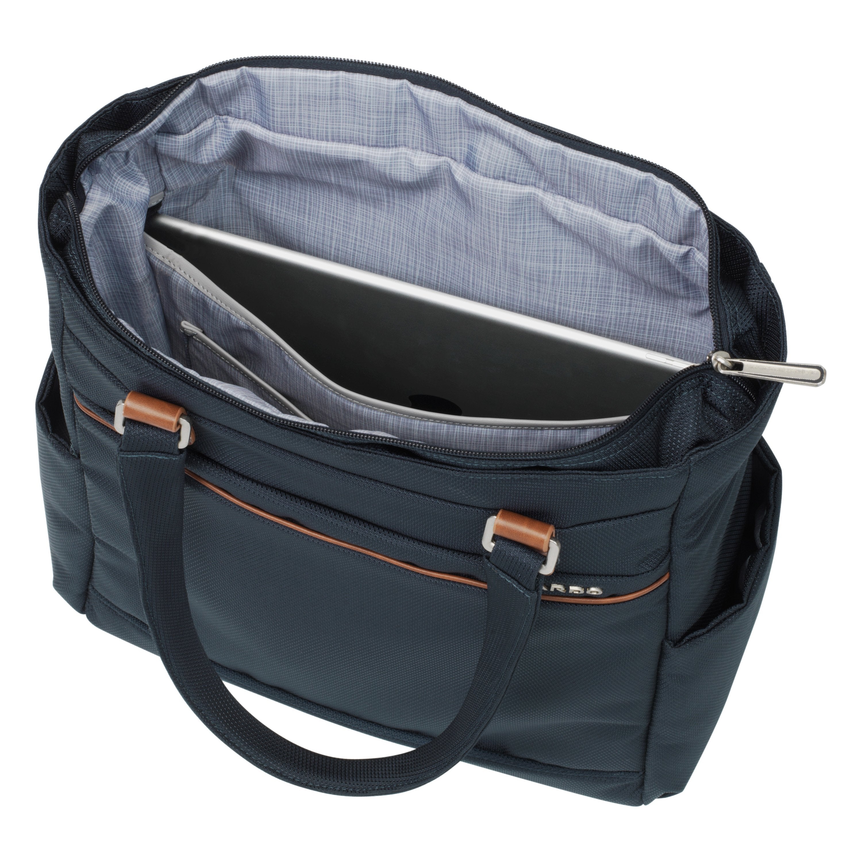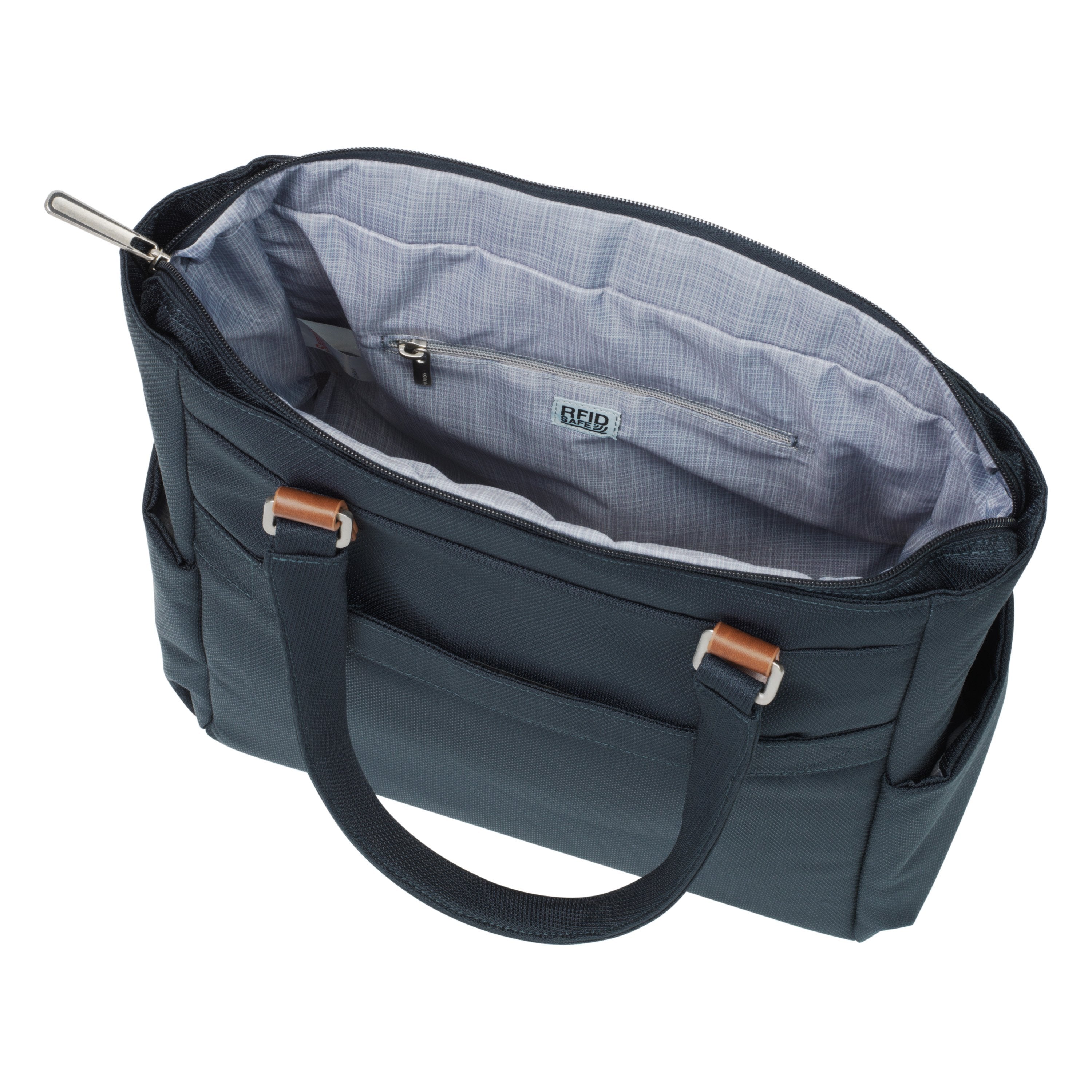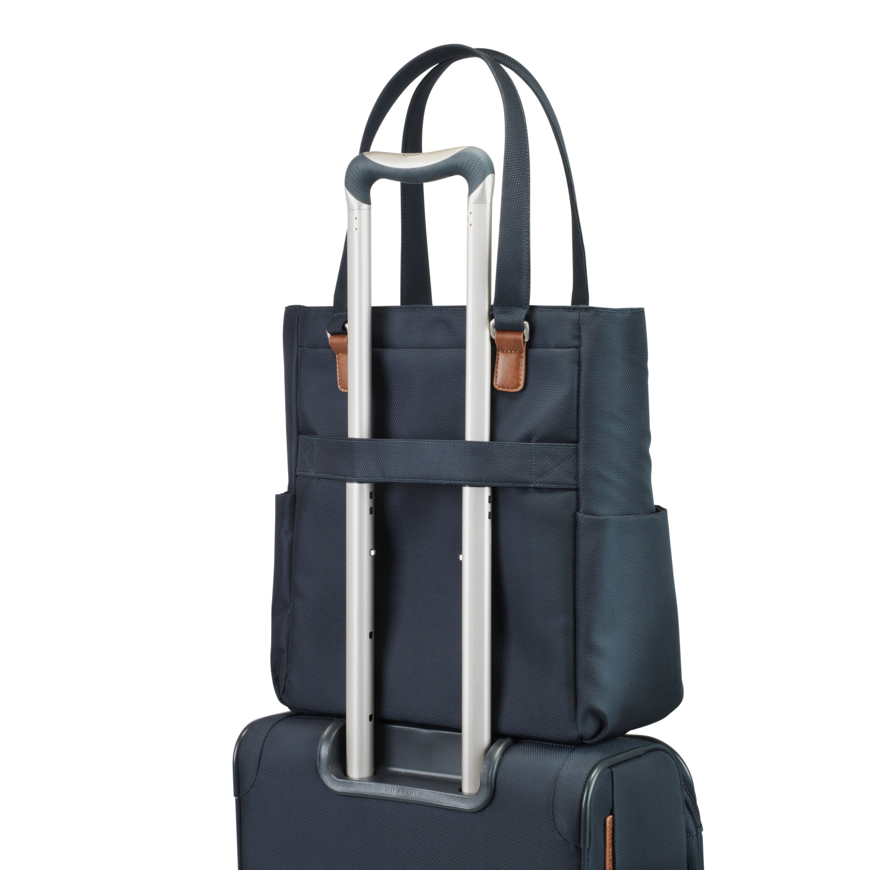 Spacious and organized, this lightweight travel tote has dedicated space for your laptop and tablet, an RFID-safe pouch, and a number of pockets for travel documents, chargers, and other accessories. With resilient materials and a hands-free strap for transporting it on top of your luggage, this go-anywhere carry-on tote is a convenient addition to any luggage collection.