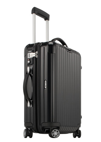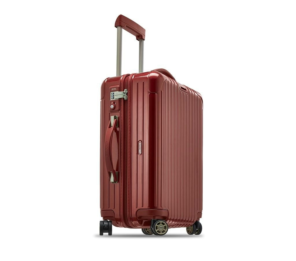 Manufactured from high-quality polycarbonate, this luxurious collection combines a brilliant appearance with high durability and top functionality. From the practical Business Trolley to the large Multiwheel, each case is equipped with the most state-of-the-art technology and intelligent details.Starting from the interior, the Salsa Deluxe is equipped with the removable and adjustable flex-divider allowing the traveler to pack as light or heavy as they wish while insuring the contents of the case will not move around during the trip. On the exterior of the case, the technology starts with the Add a Bag holder, a convenient strap that lies flush in the case when unused, yet pulls out to attach an extra bag, freeing up a hand. Now with the addition of the RIMOWA logo on the Add a Bag holder, the front of the case appears clean and simple, outlining the Trademark groovesâ„¢. Embedded and now new flush TSA combination locks allow contents to remain secure, while also accessible only to airport security when needed. The gel infused ergonomic handles allow for even more comfortable handling, and the new stageless telescopic handle allows for adjustable height to work with any traveler. The patented Multiwheel system allows the case to roll smoothly over any terrain, and now rolls even quieter than before with the new silent Multiwheel casters. Finished off with the tone-on-tone detailing and the Trademark RIMOWA groovesâ„¢, Salsa Deluxe is the next generation of luggage.The Salsa Deluxe Cabin Multiwheel is the perfect case for weekend getaways or business trips. This case, made from high-quality polycarbonate, comes equipped with some of the latest tools and technology luggage has to offer, including: