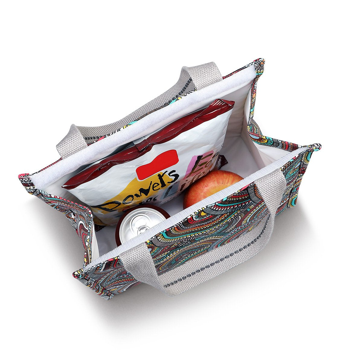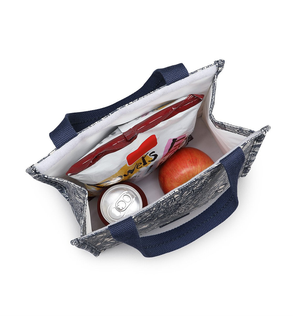 Pack a punch at lunch with our printed On the Go Lunch Pack, designed with easy to clean coated canvas and an insulated interior to keep everything cool. A velcro closure keeps everything in place.