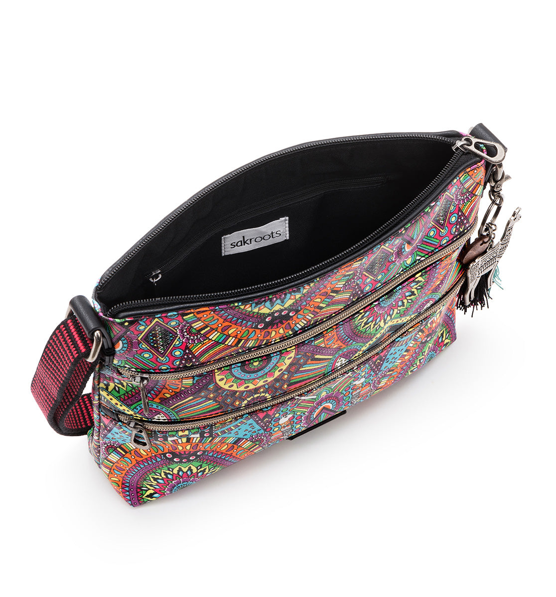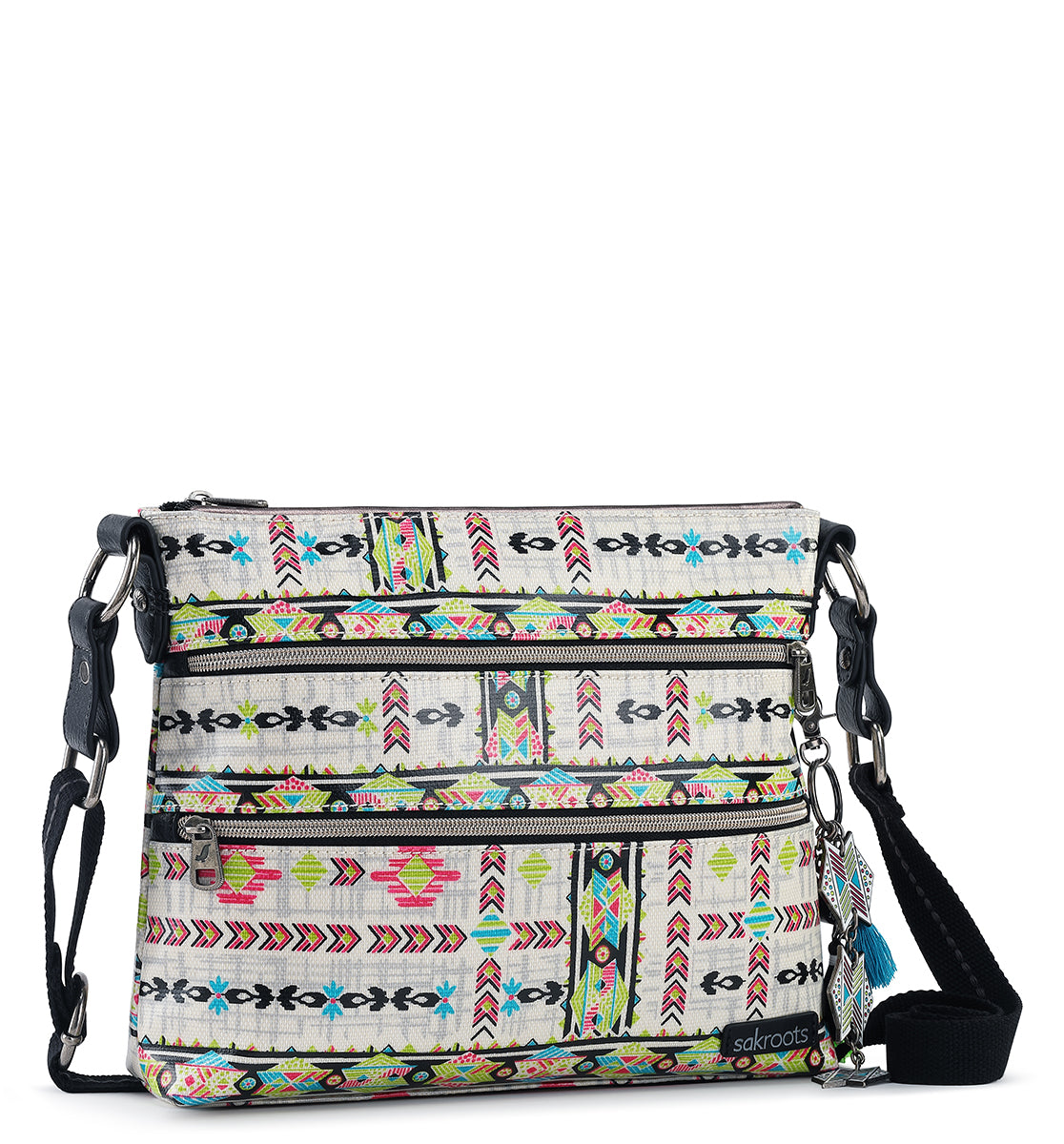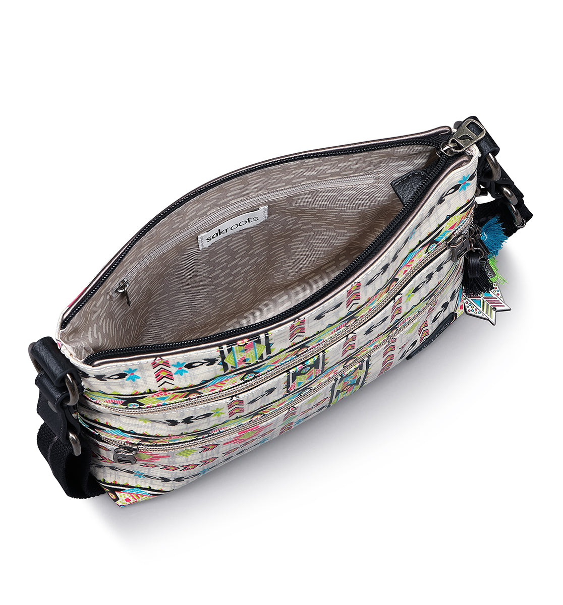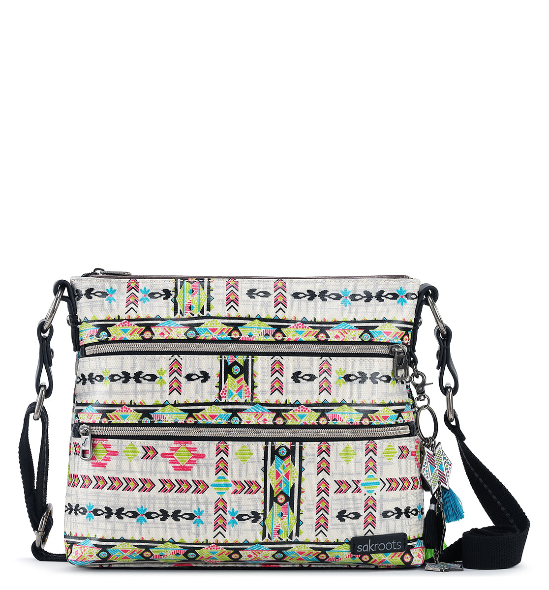 The Sakroots Artist Circle Basic Crossbody is equipped with multiple pockets and an adjustable strap. Dont be afraid to wear this chic bag during the day or to jazz up an outfit at night! Perfect for a day out touring.
