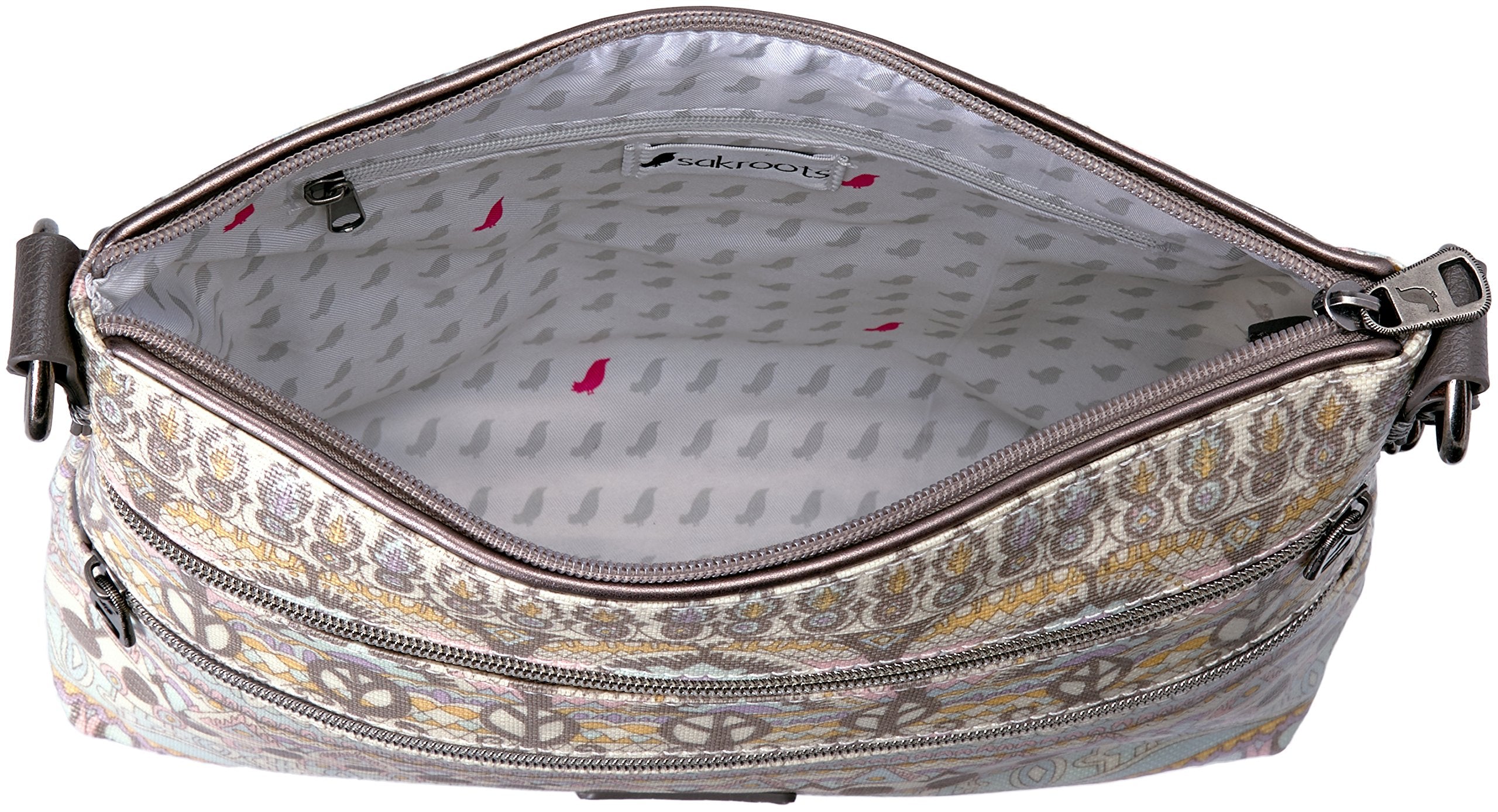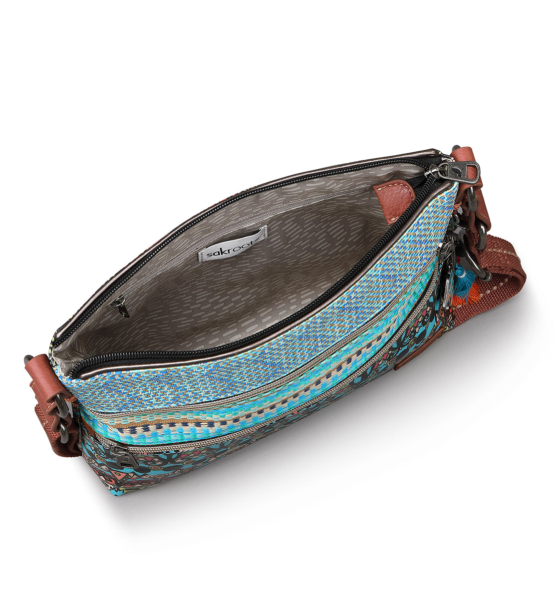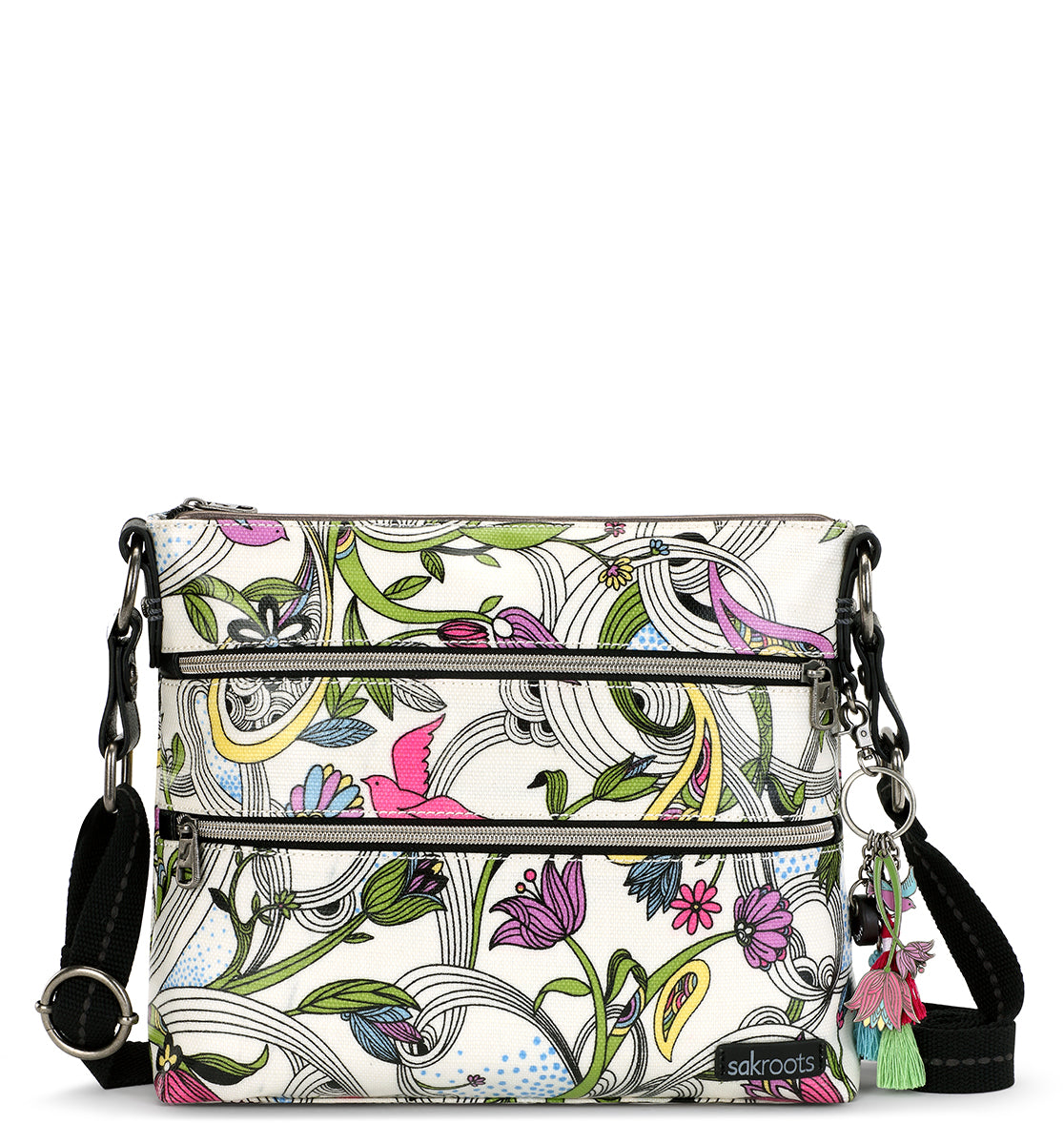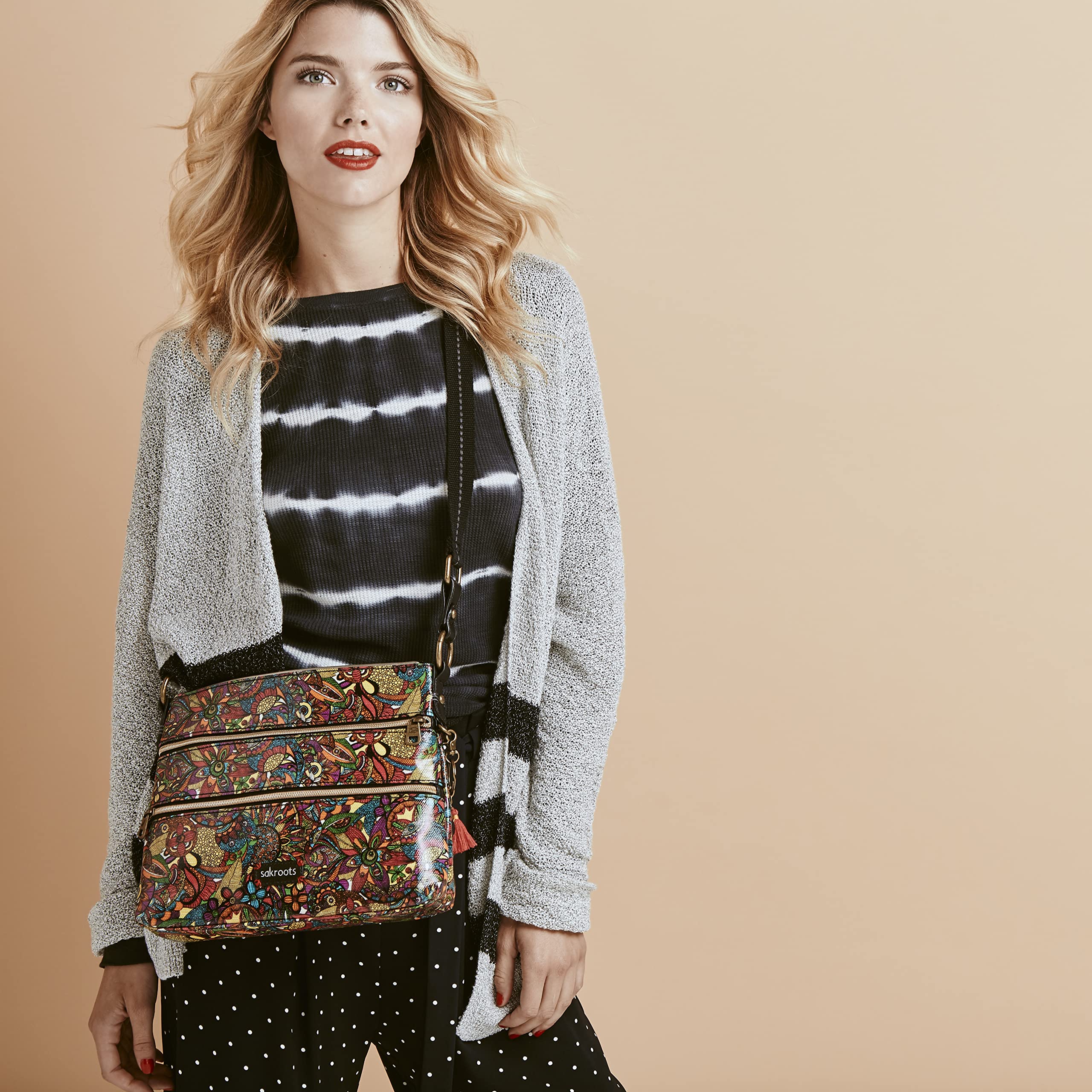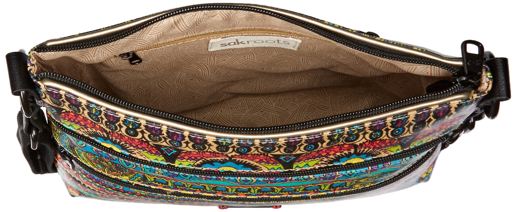 The Sakroots Artist Circle Basic Crossbody is equipped with multiple pockets and an adjustable strap. Dont be afraid to wear this chic bag during the day or to jazz up an outfit at night! Perfect for a day out touring.
