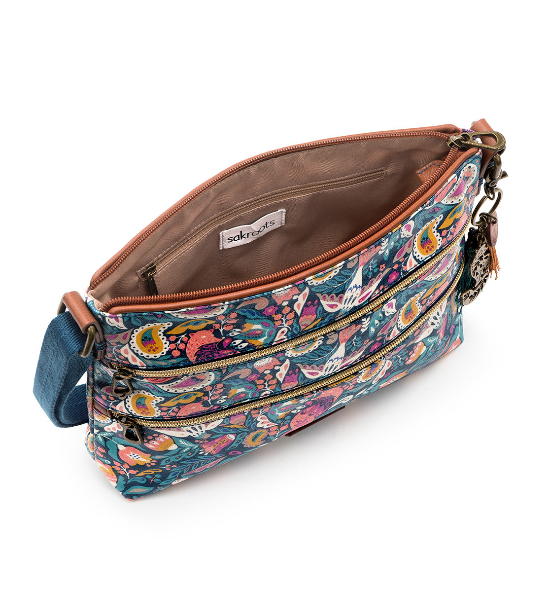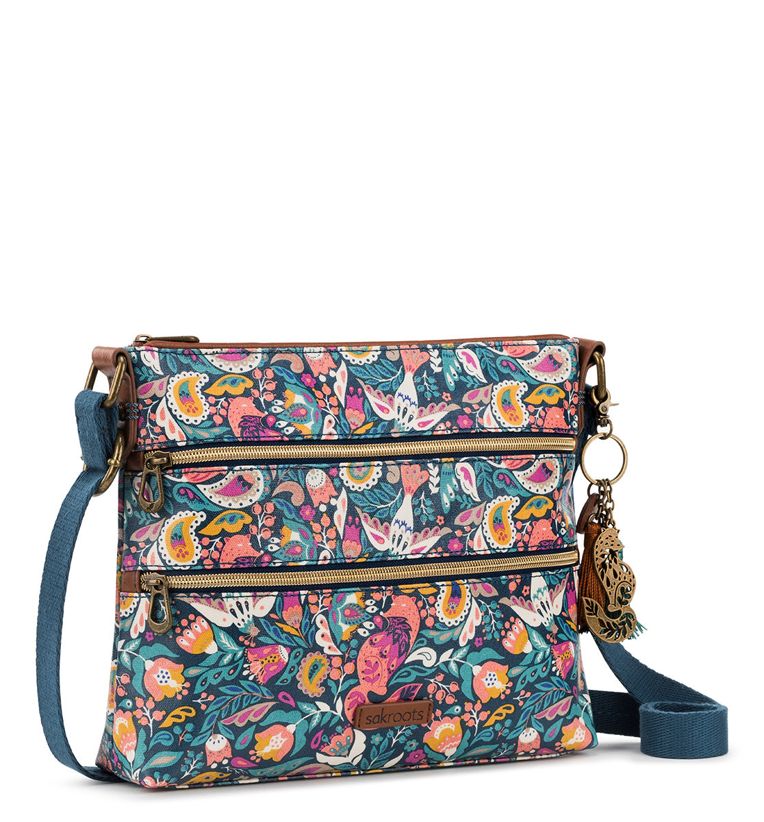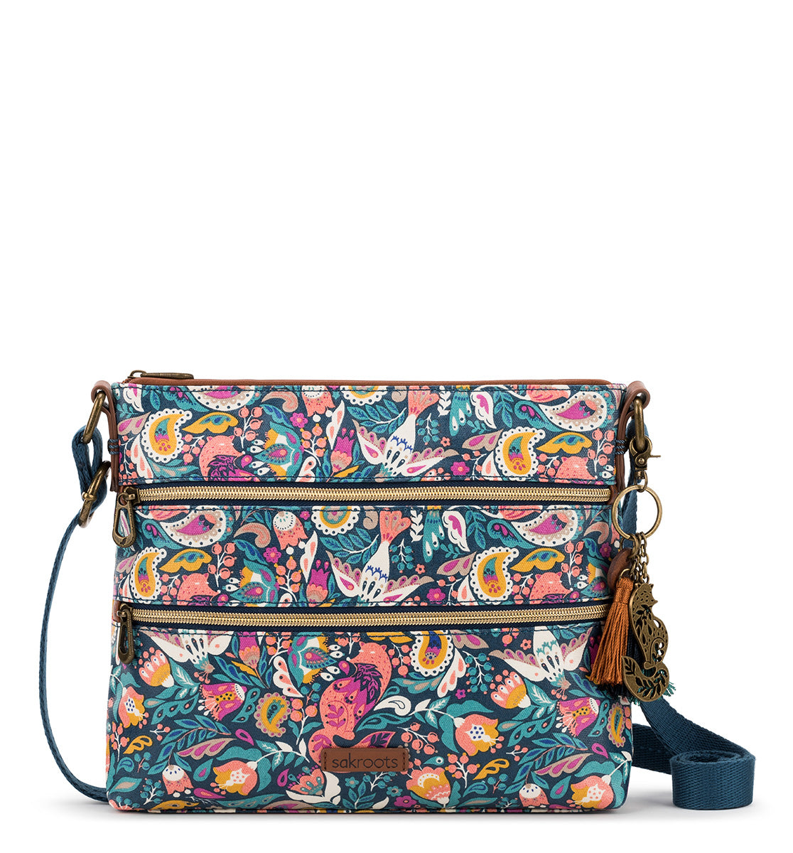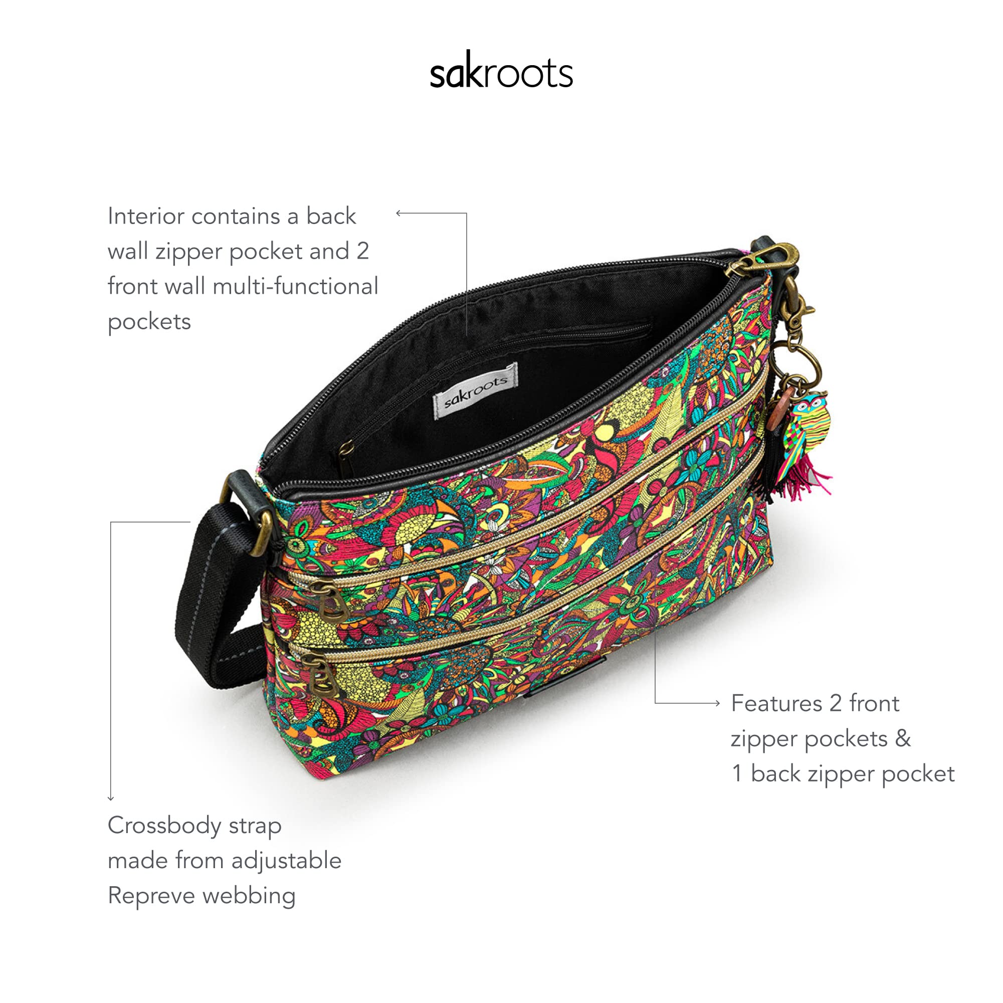 The Sakroots Artist Circle Basic Crossbody is equipped with multiple pockets and an adjustable strap. Dont be afraid to wear this chic bag during the day or to jazz up an outfit at night! Perfect for a day out touring.