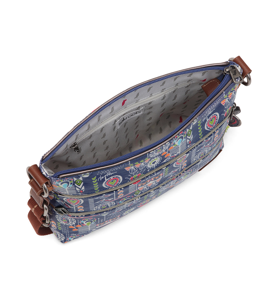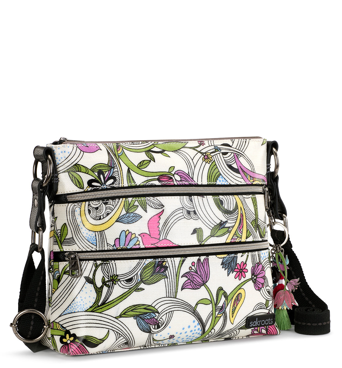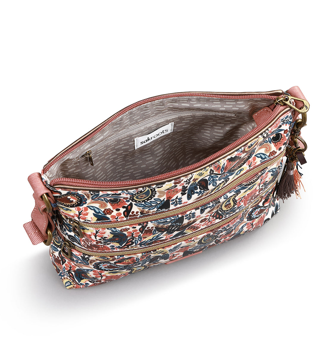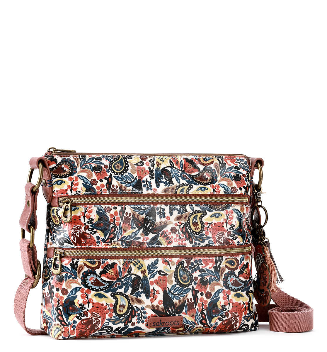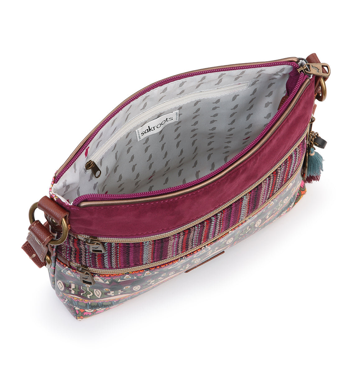 The Sakroots Artist Circle Basic Crossbody is equipped with multiple pockets and an adjustable strap. Dont be afraid to wear this chic bag during the day or to jazz up an outfit at night! Perfect for a day out touring.