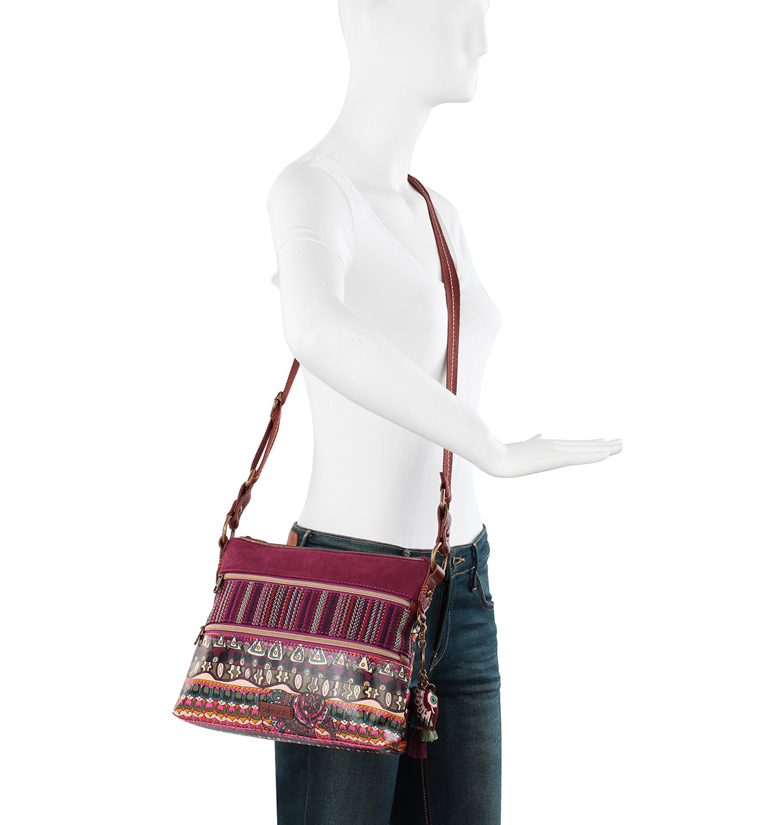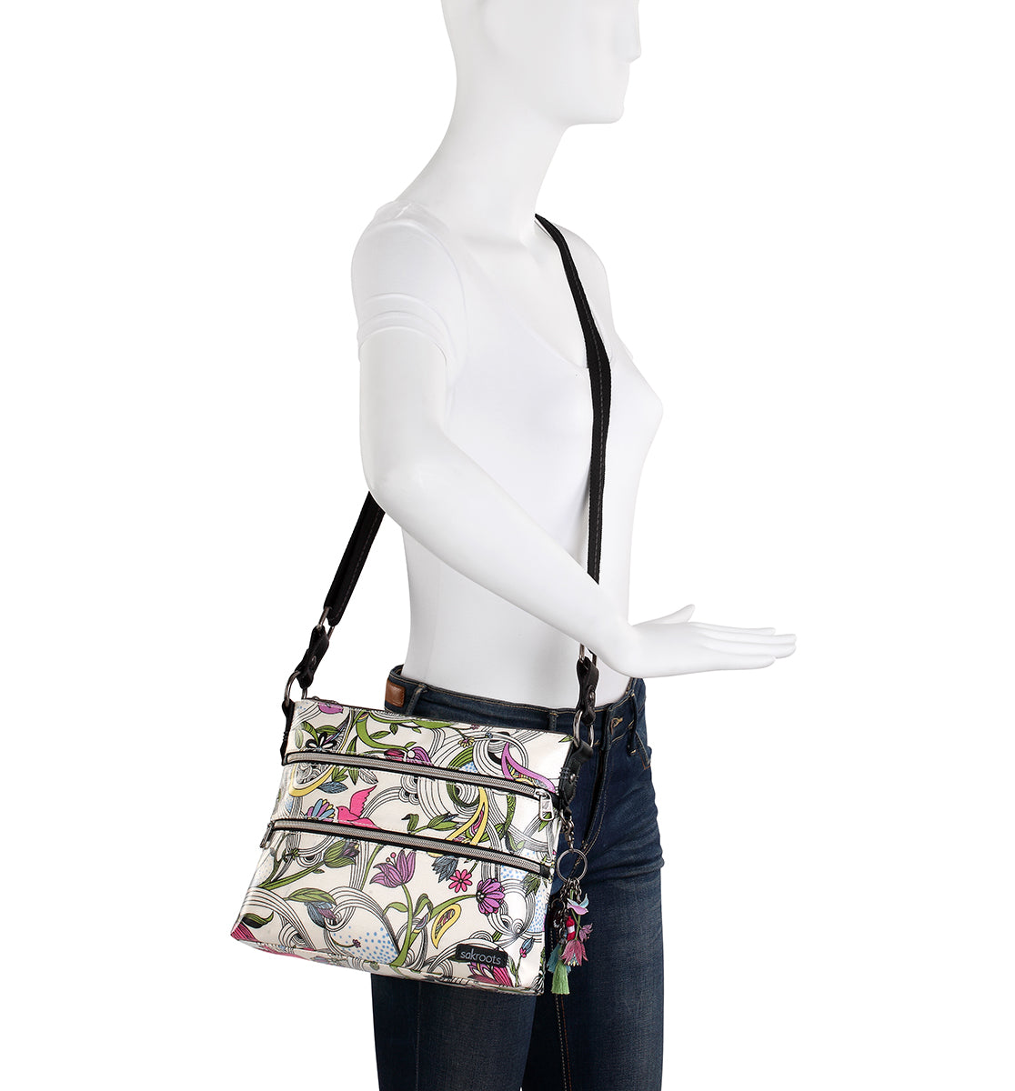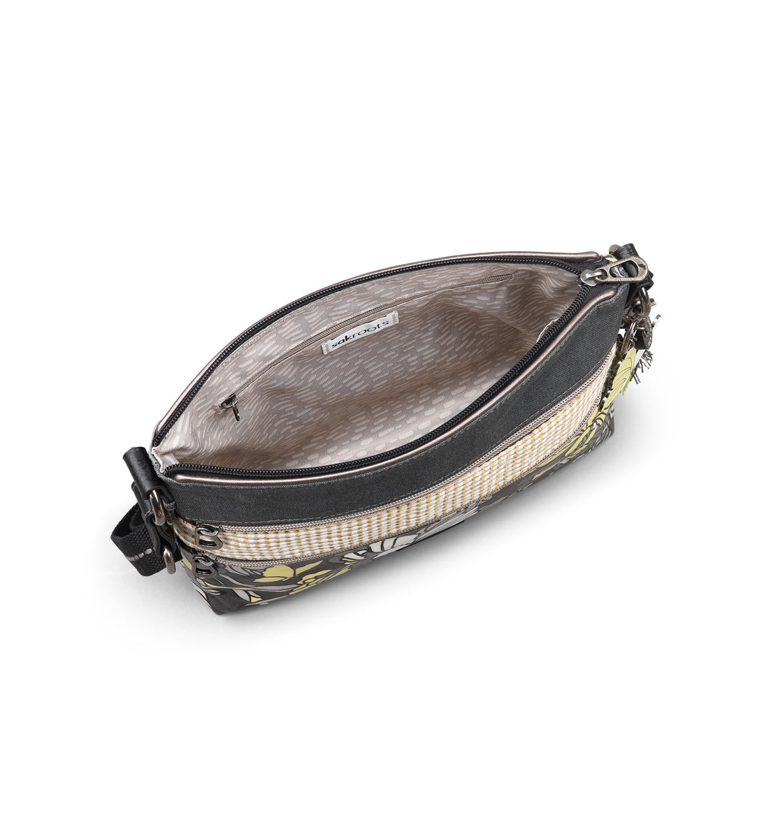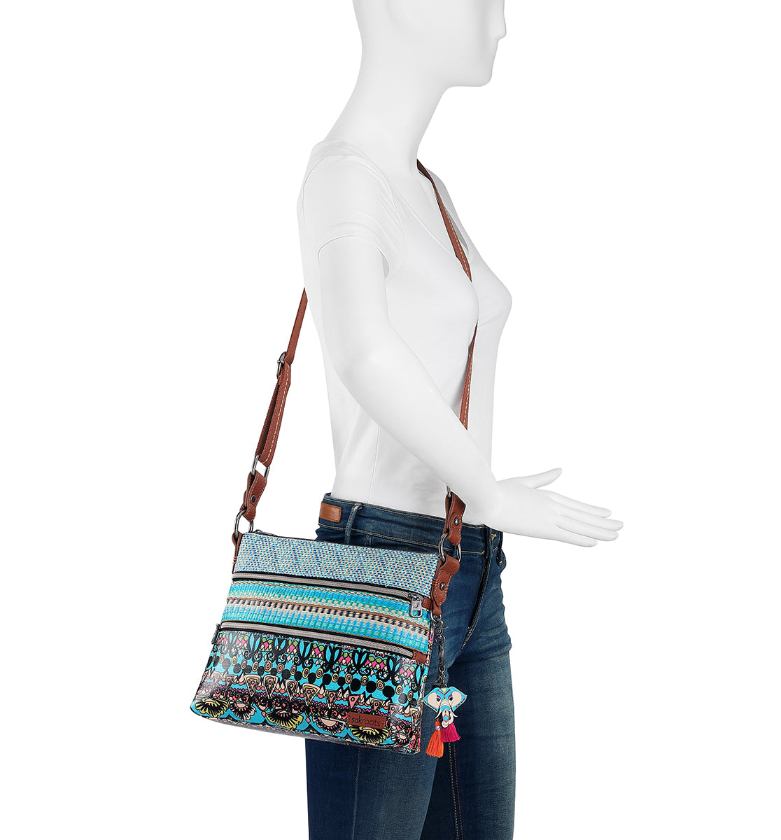 The Sakroots Artist Circle Basic Crossbody is equipped with multiple pockets and an adjustable strap. Dont be afraid to wear this chic bag during the day or to jazz up an outfit at night! Perfect for a day out touring.