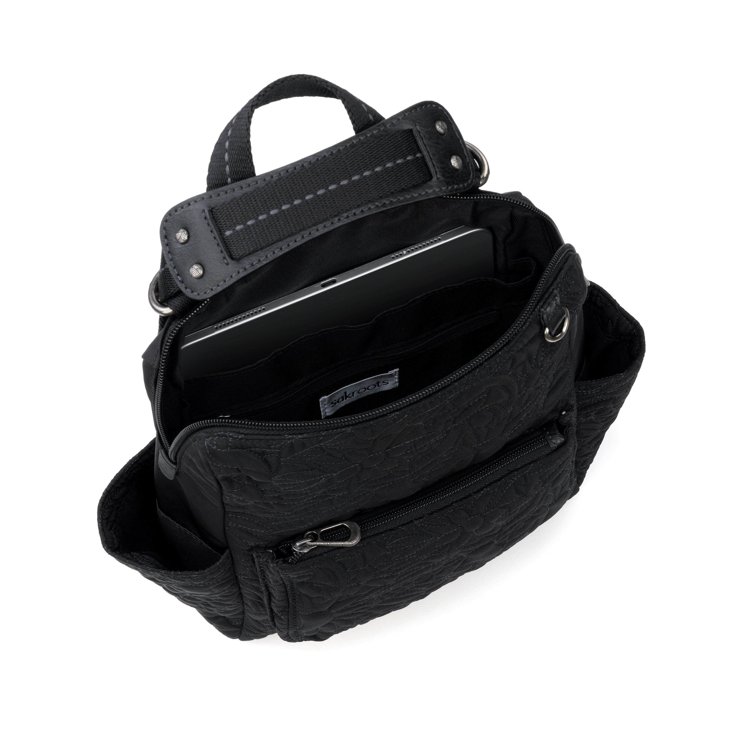 The backpack youll bring everywhere, made from recycled plastic bottles. With multi-functional pockets, a padded interior for a 15 inch laptop, and the ability to go from backpack to crossbody instantly, its always adventure-ready.