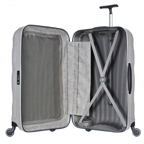 The strongest and lightest Samsonite ever thanks to revolutionary curv technology. Curv is a reinforced material made from woven threads of polypropylene and is exclusive to Samsonite. Its specially molded shell-like ridges create style and distinction upique to cosmolite. Made in Europe.